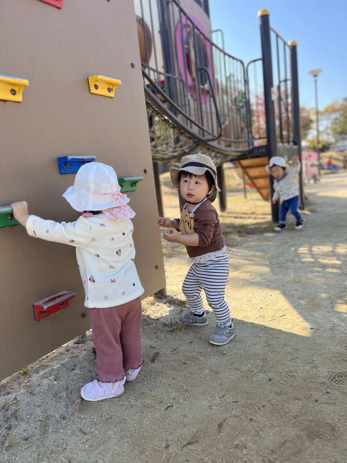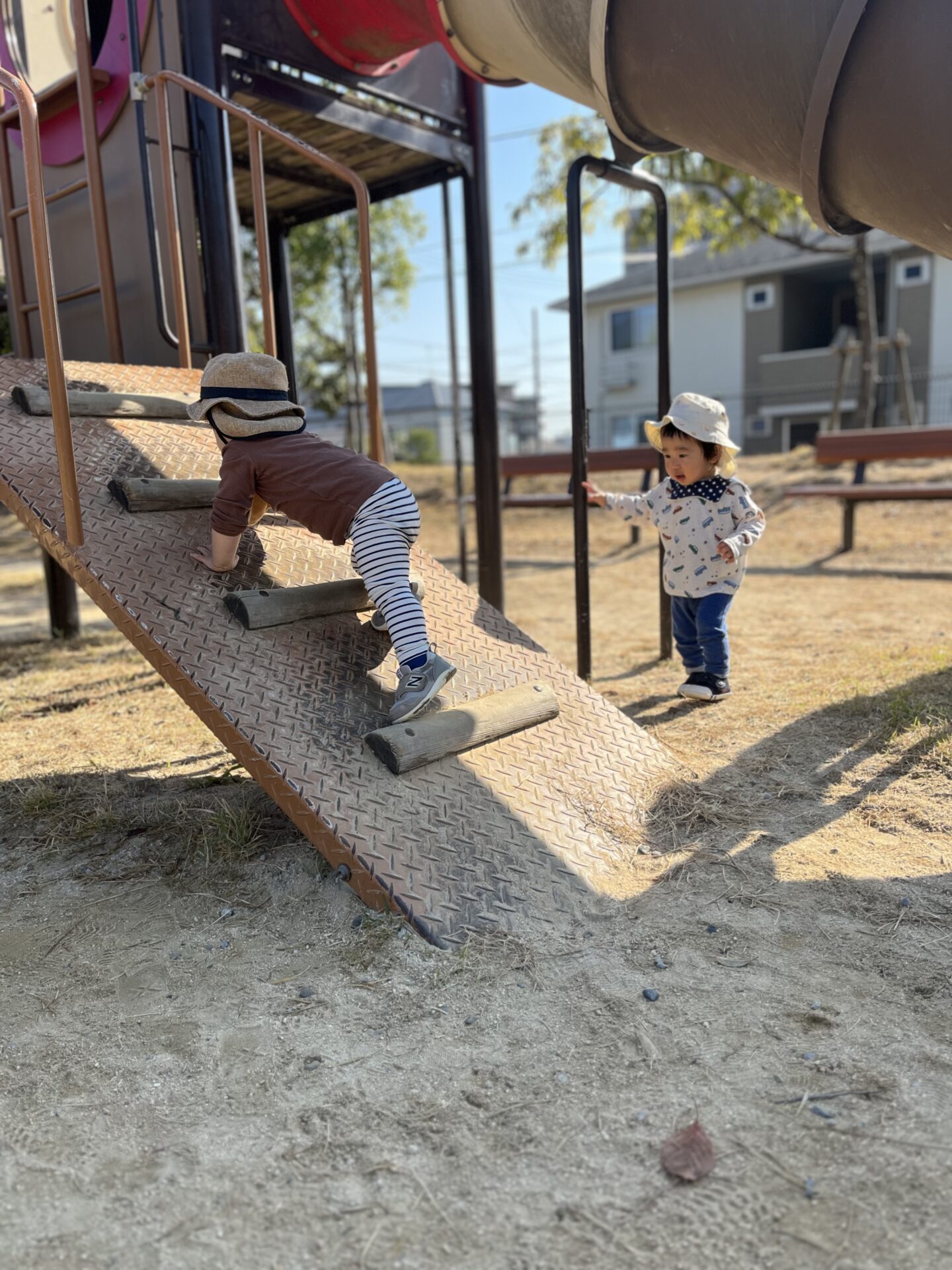 散歩車から降りると、真っ先に遊具へ走っていきます。