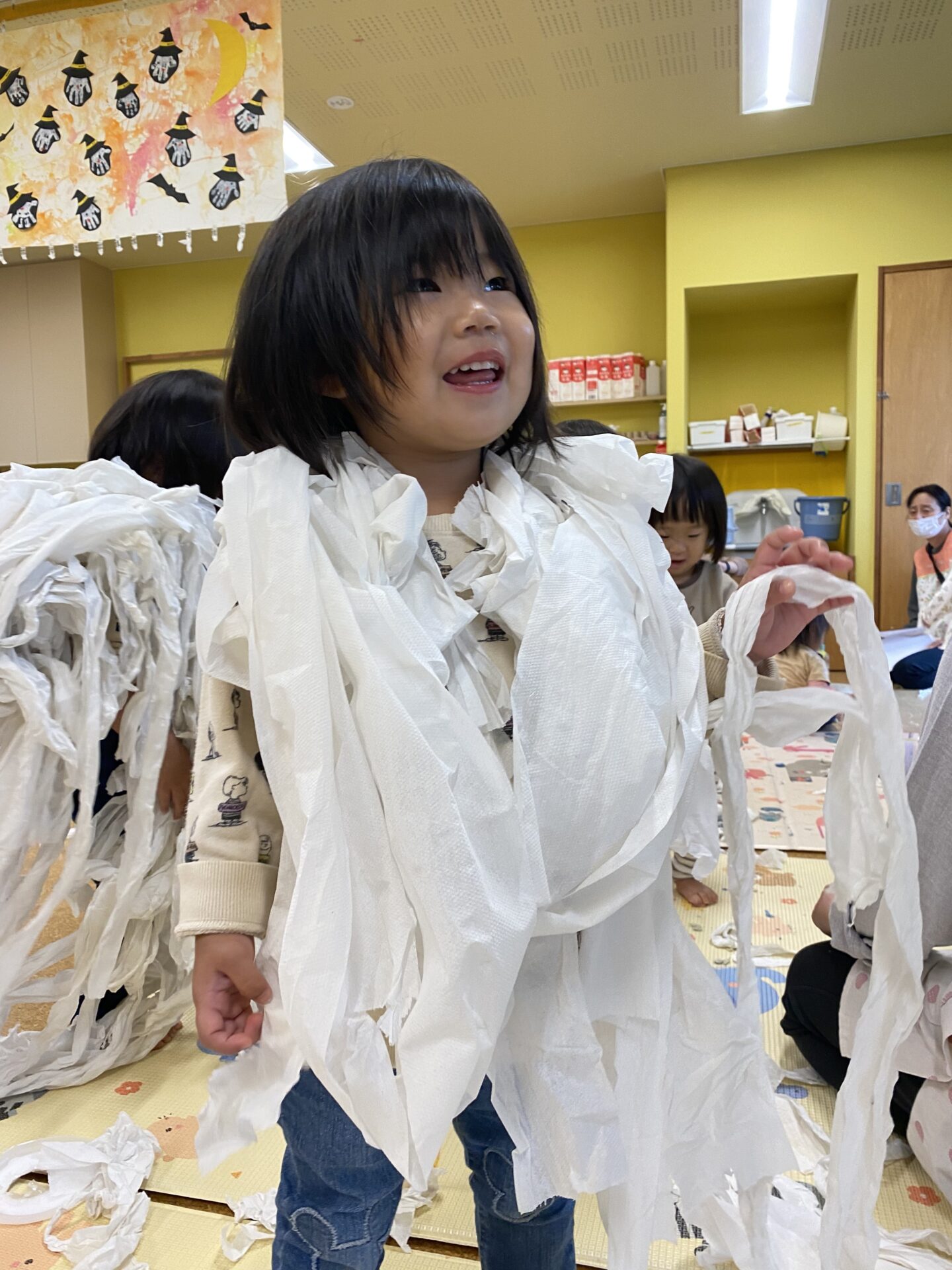 何かな?先月ハロウィンのオバケの製作をしていたので、オバケのイメージかな?なりたい自分になれたでしょうか?