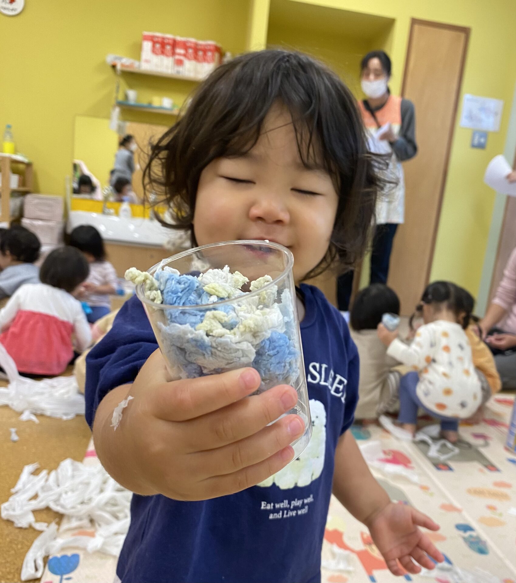 お家では、なかなか出来ない体験かもしれません。保育園では、時には「普段できないこと」に着目して、心を開放して遊ぶのも面白いなと感じました。