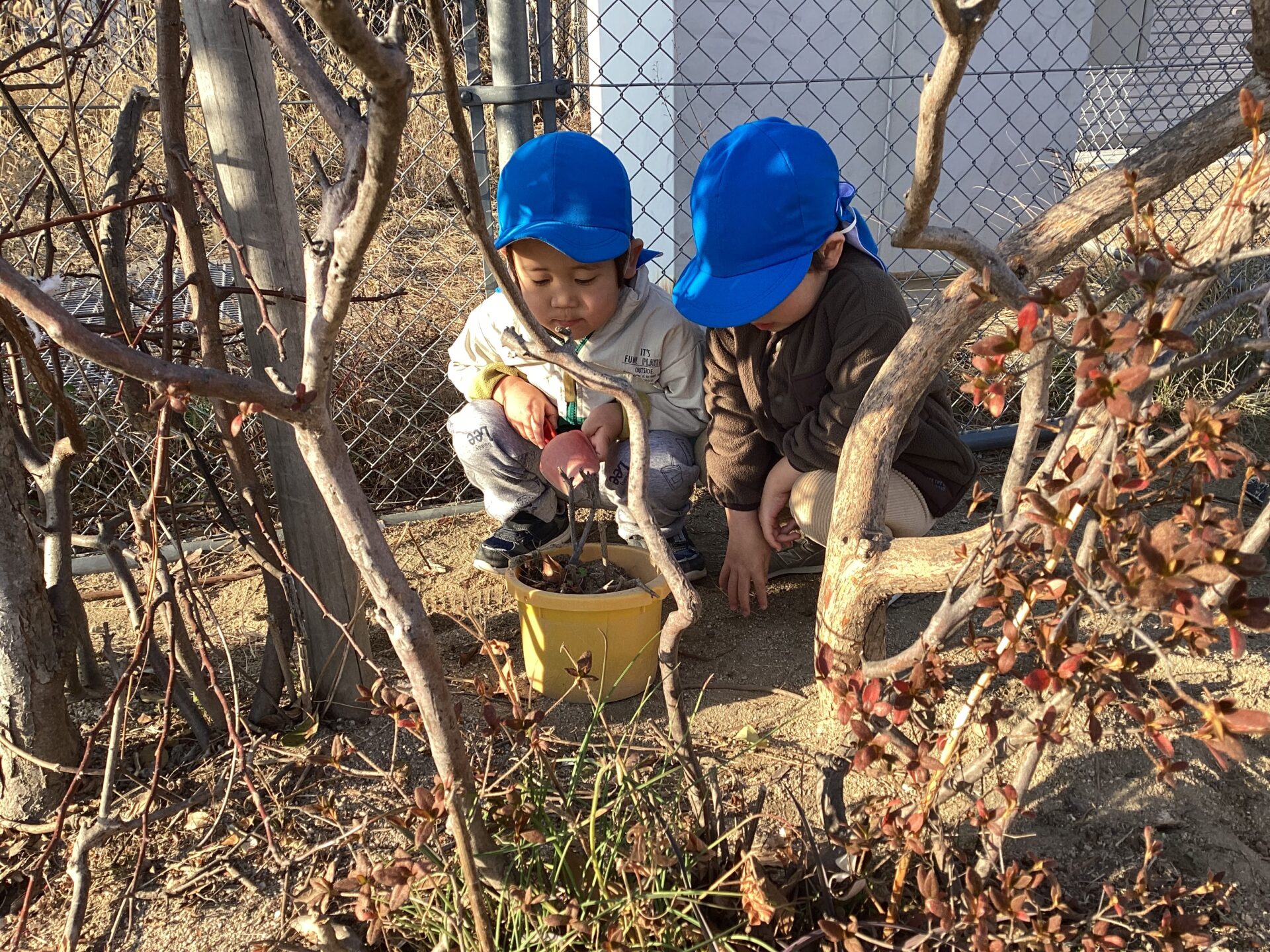 外遊びでは秘密基地に夢中!