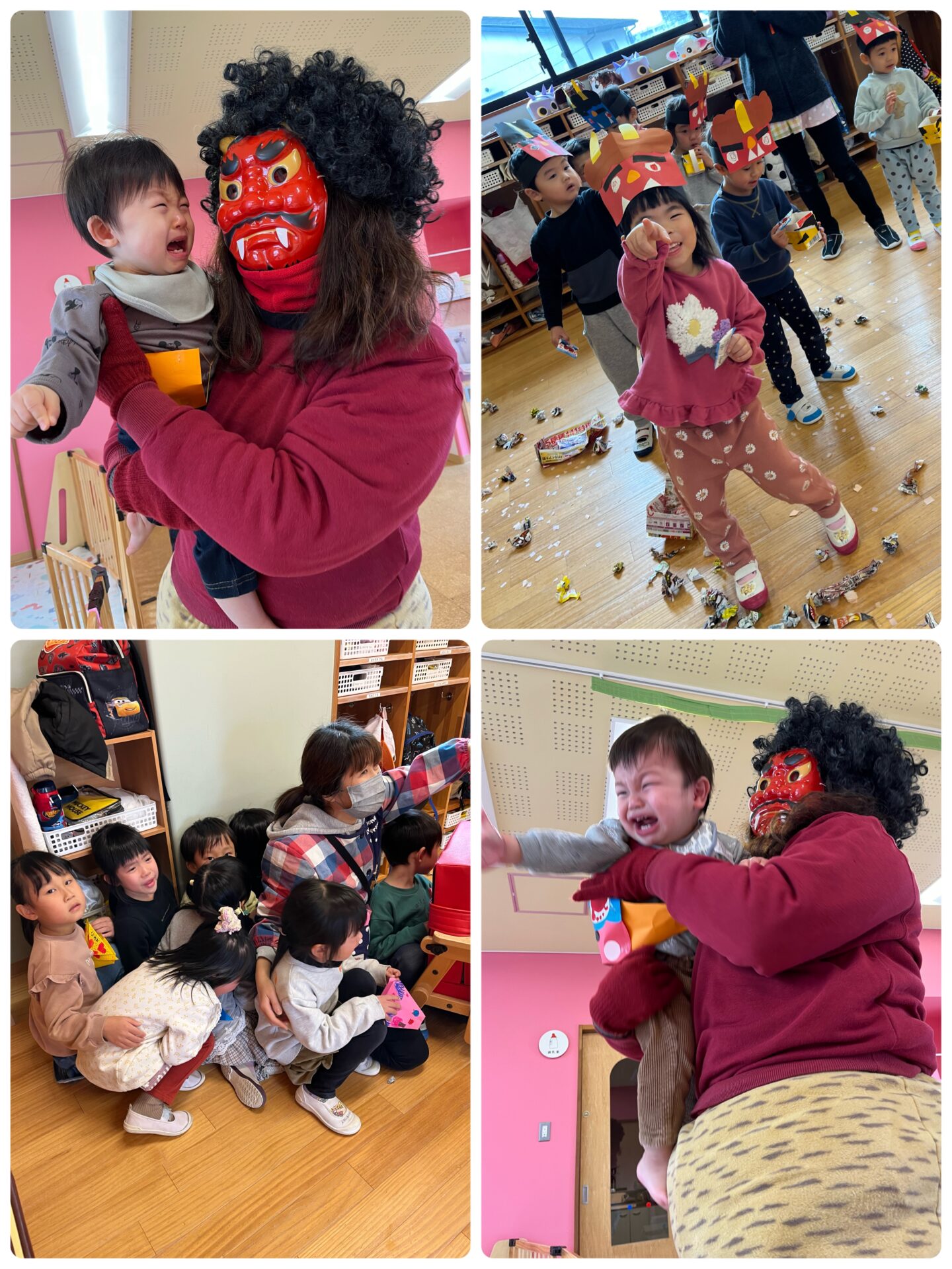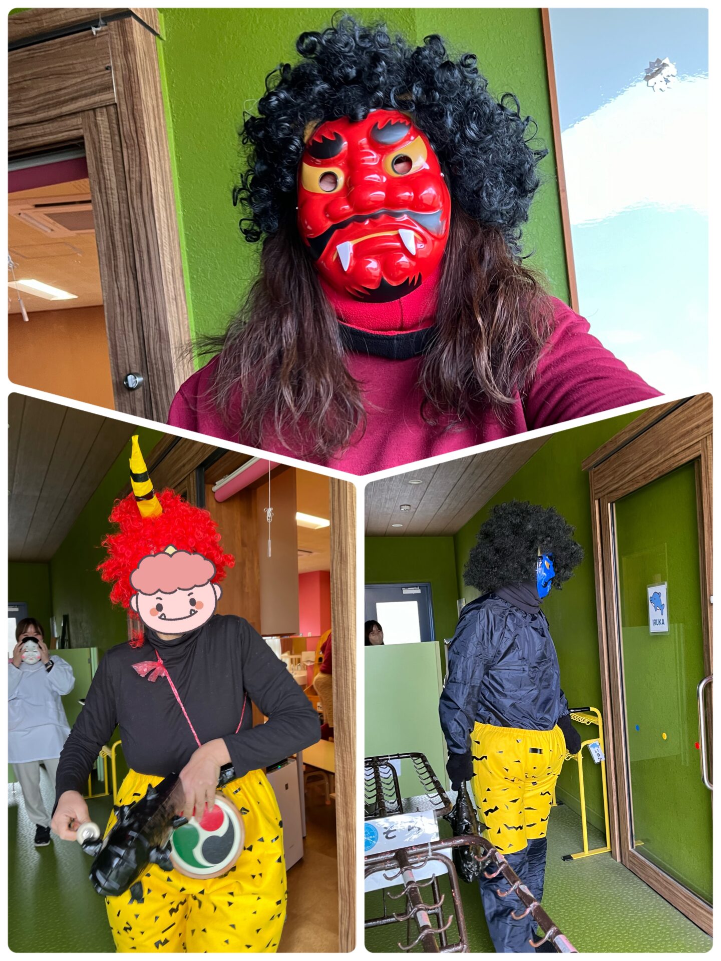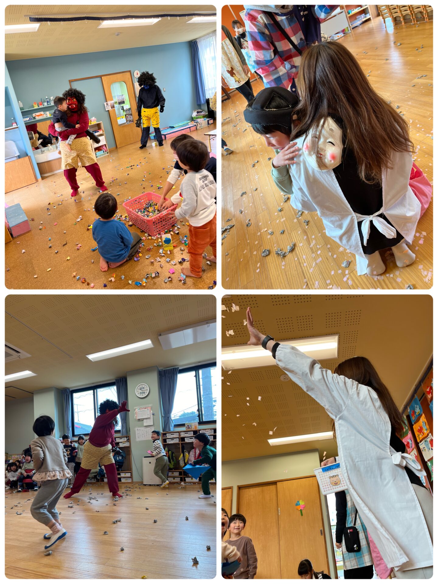 今年は3匹の鬼と、年女の福の神T先生が各保育室を回ってくれました。