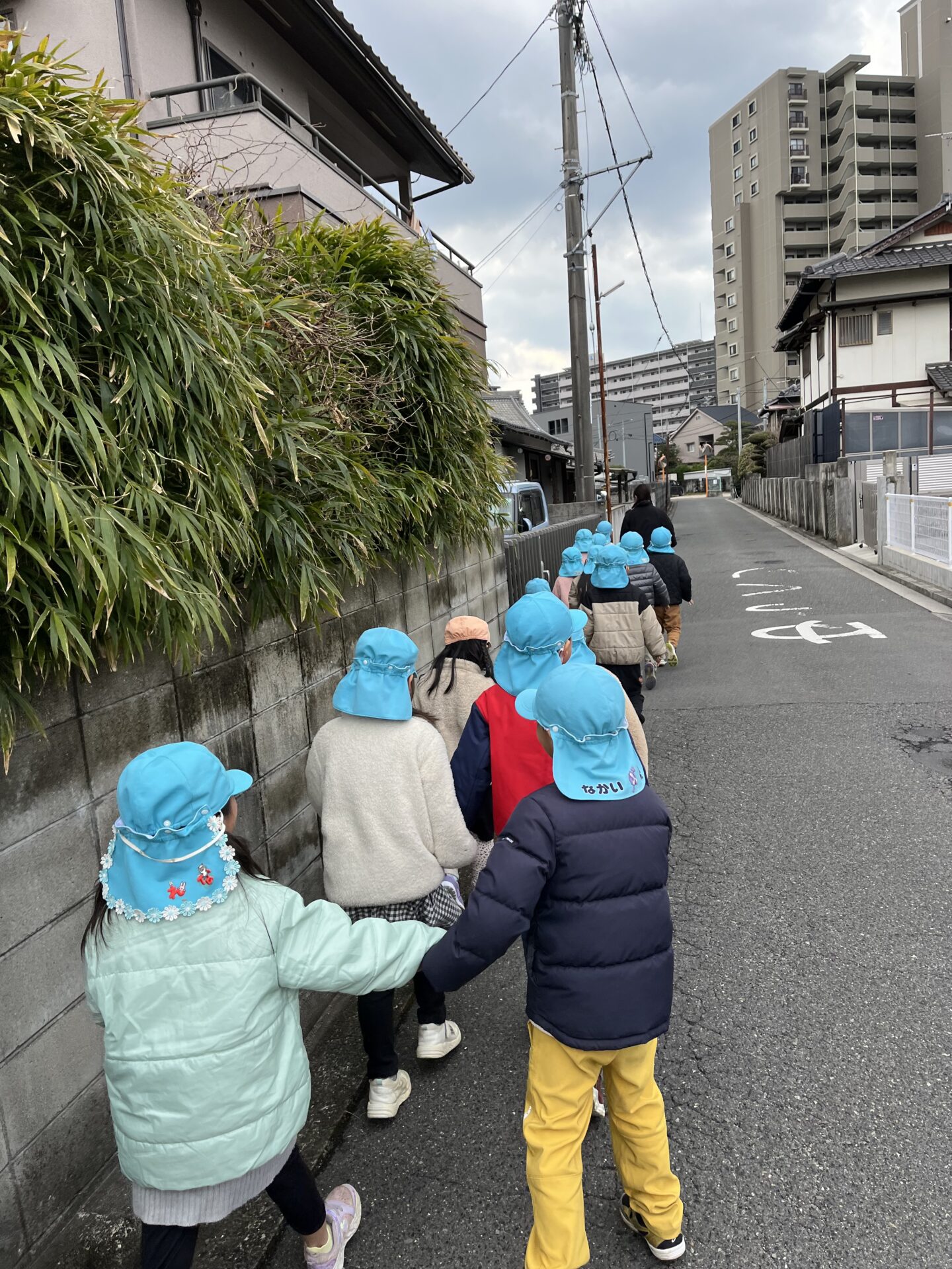 神社までは、保育園から子どもの足で10分ほどの道のりです。
