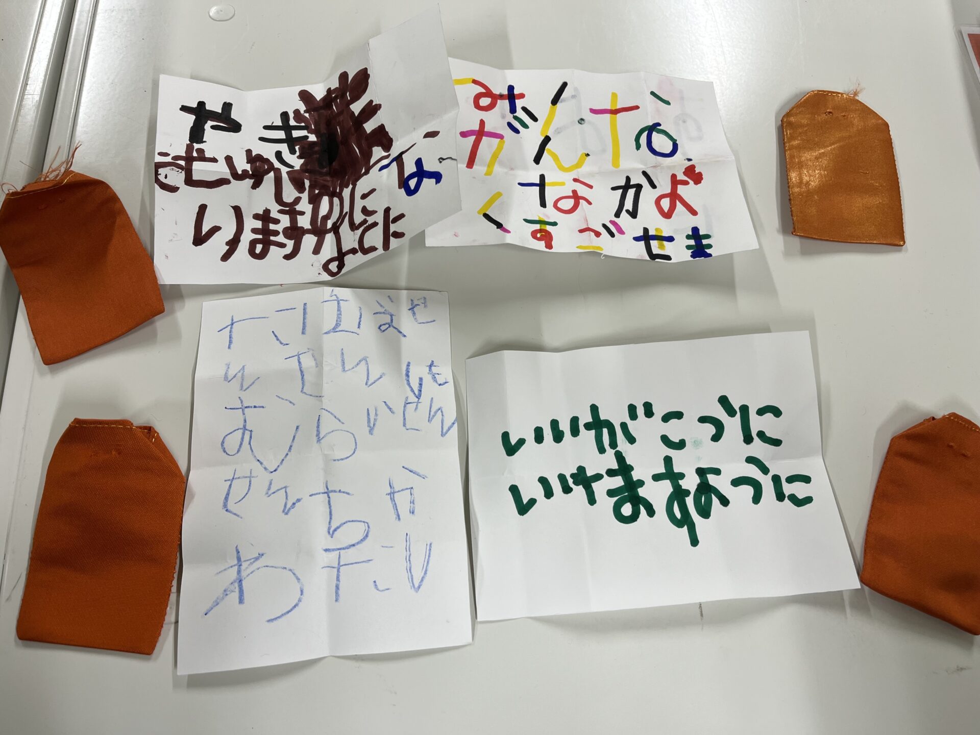1月始めに、そら・くじらチームがお守り袋の中に、子ども達の願い事を書いた紙を入れ、お守りを作りました。