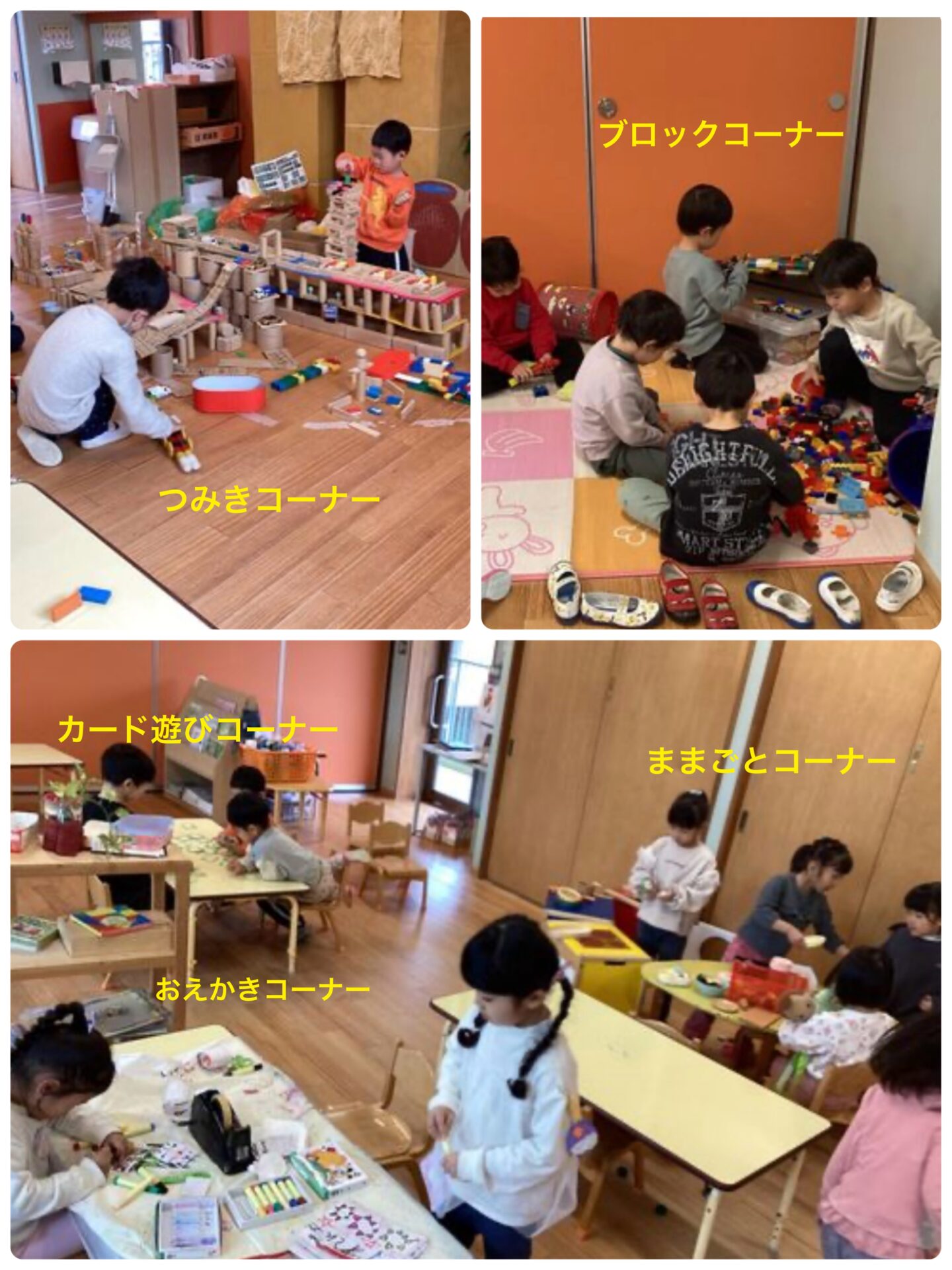 それは、保育園で言うところの「コーナー遊び」に似ています。子どもの主体性を育む遊びの時間です。保育士は環境設定に注力し、子ども達が集中して遊ぶことができる工夫をします。