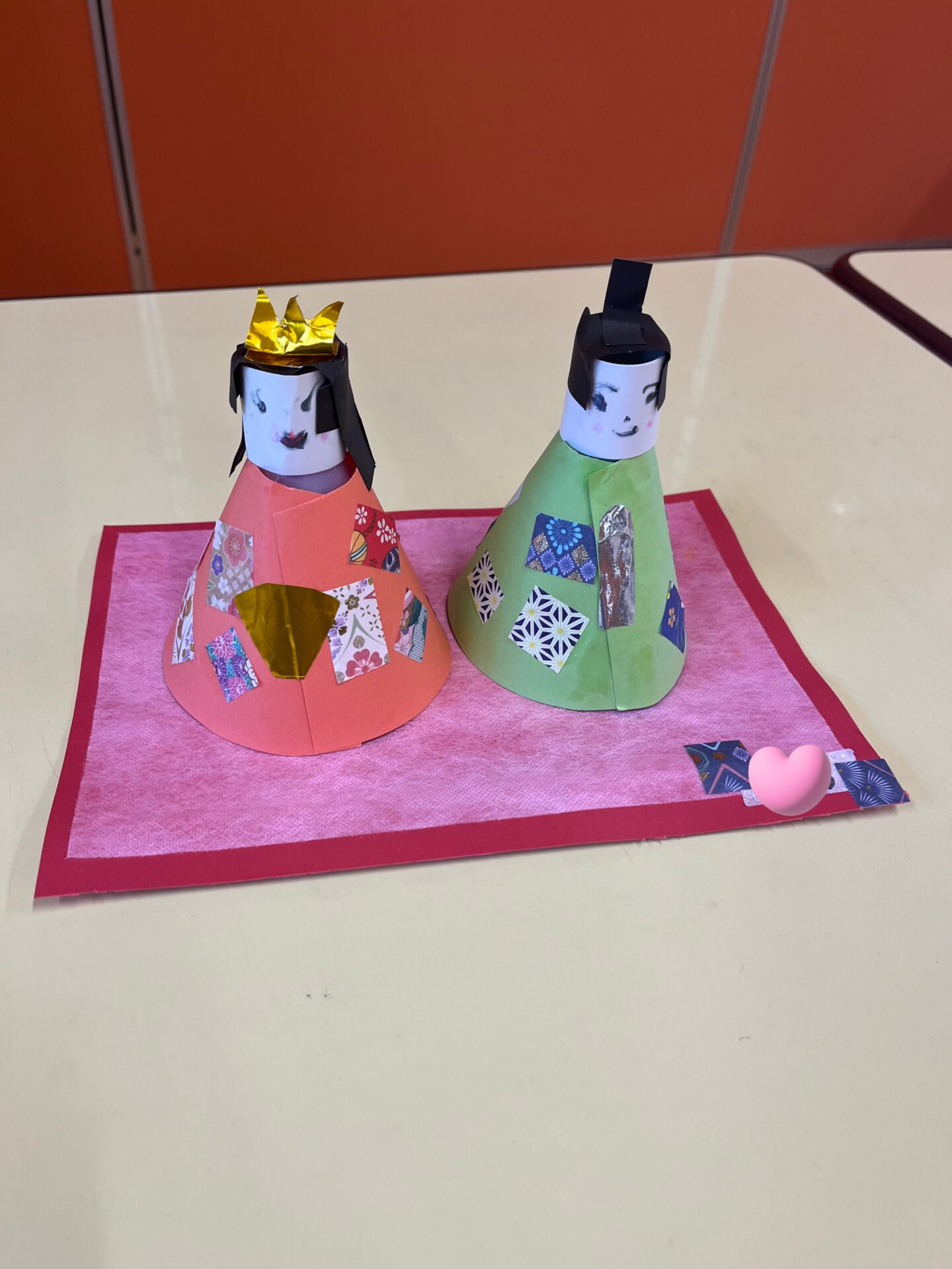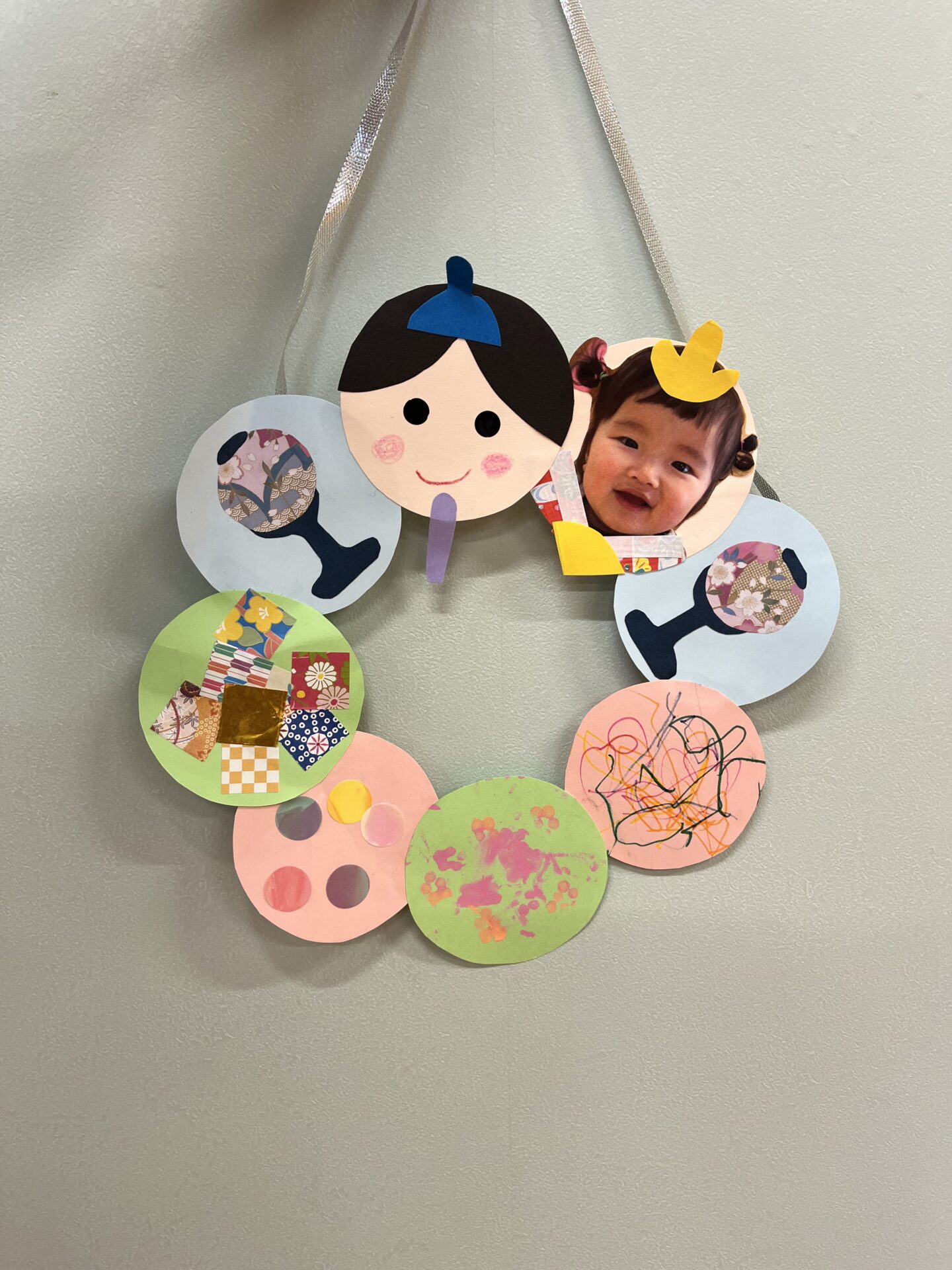プラコップにお花紙を詰めて、顔写真付きのおひなさまにしました。お隣のおだいり様は未来の…かも😍顔が描けるようになっているのもポイントです!