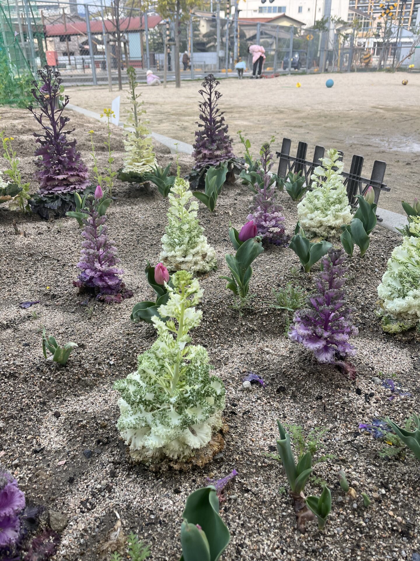 33名の新たなお友だちをお迎えするのを歓迎しているかのように、園庭の桜や菜の花、チューリップが一気に開花しました。
