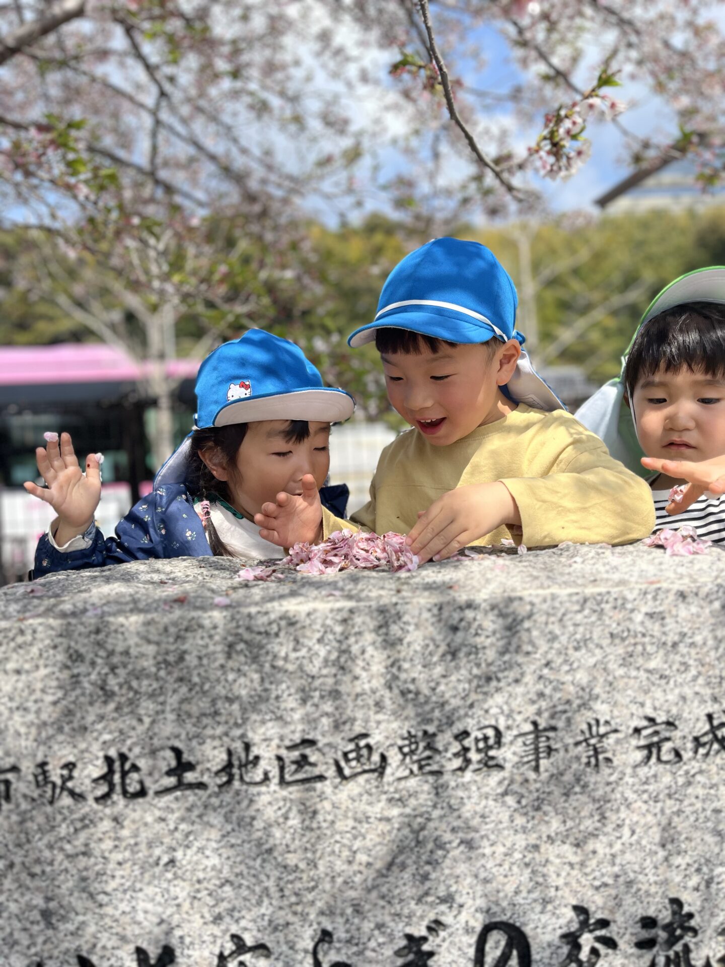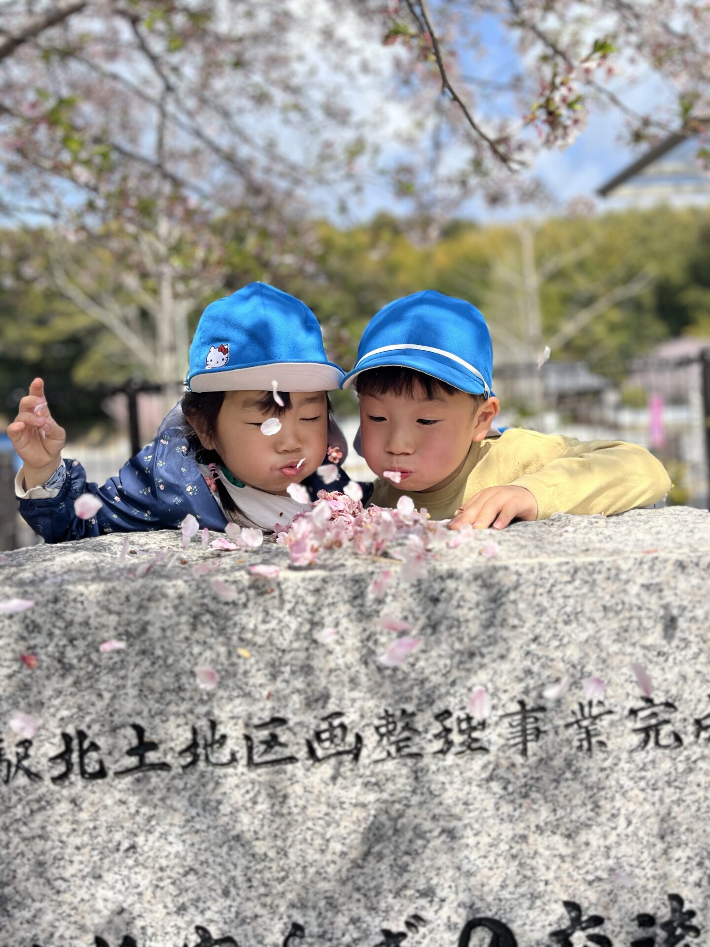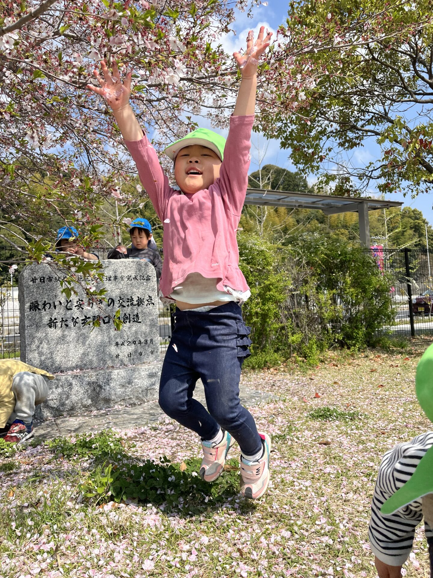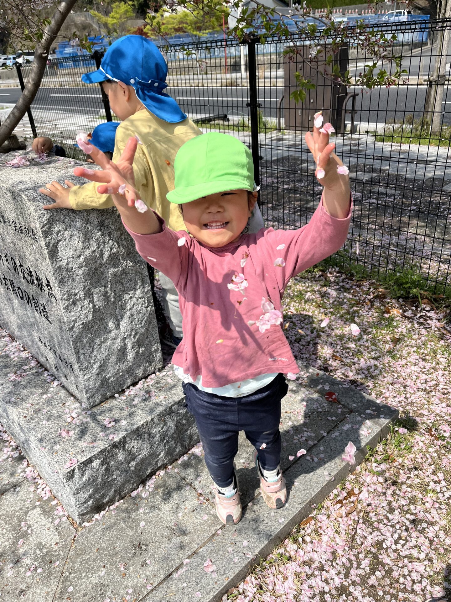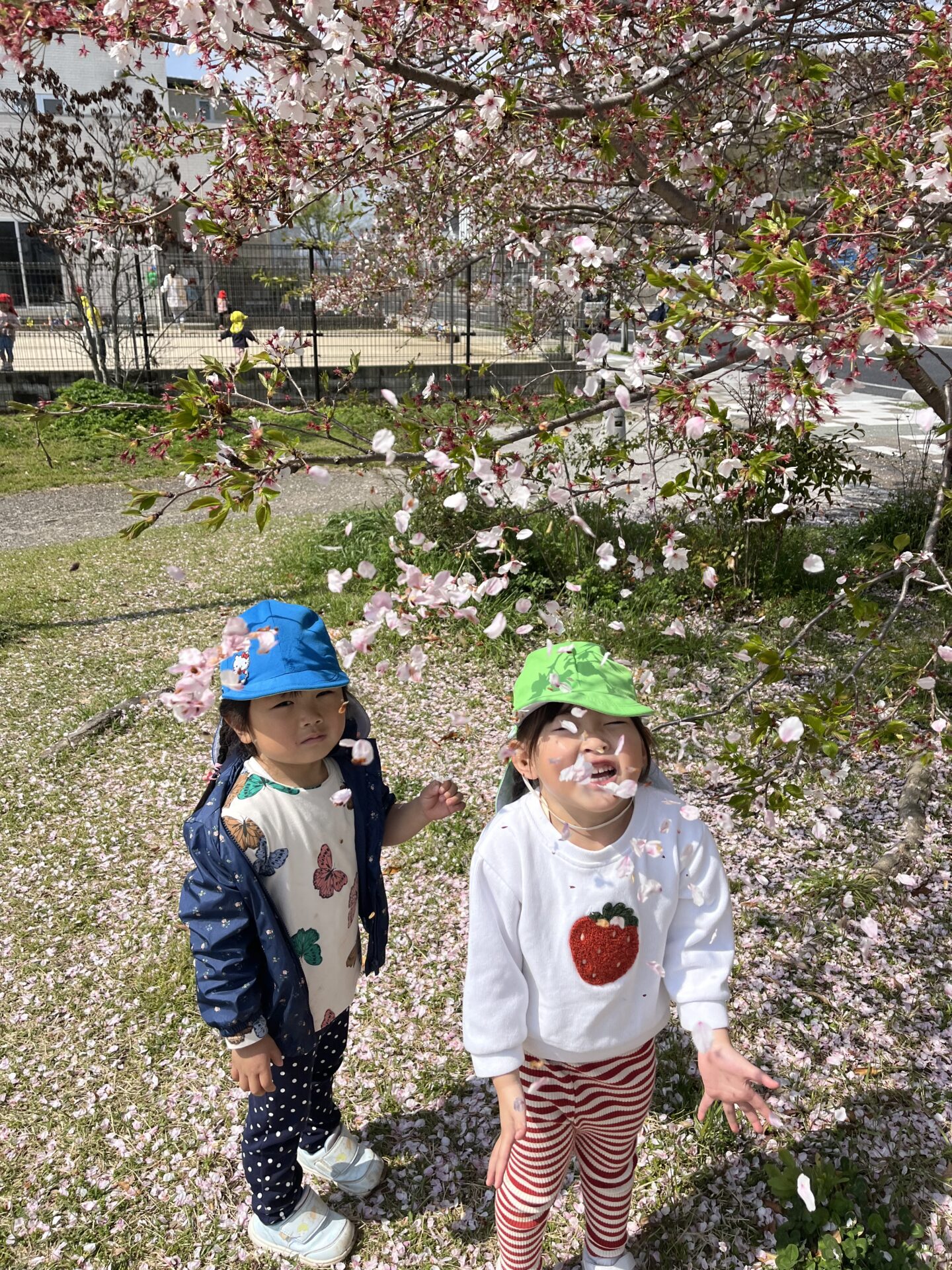 その中に、桜の花びらを集めて、人工的に桜吹雪を作る子達がいました。とってもきれいだったので激写📷しました。