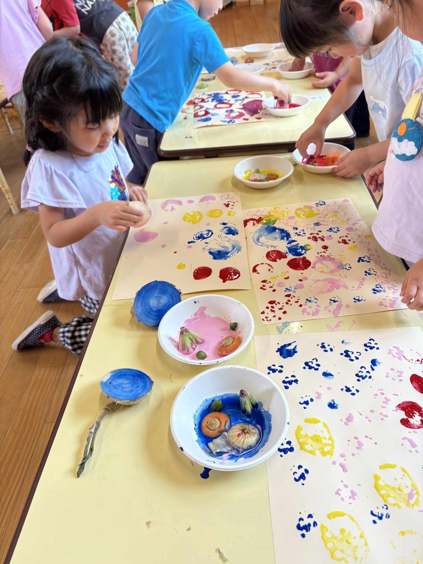 玉ねぎ、人参、レンコン、大根。小松菜の芯は、猫の足跡みたいで、可愛かったです。