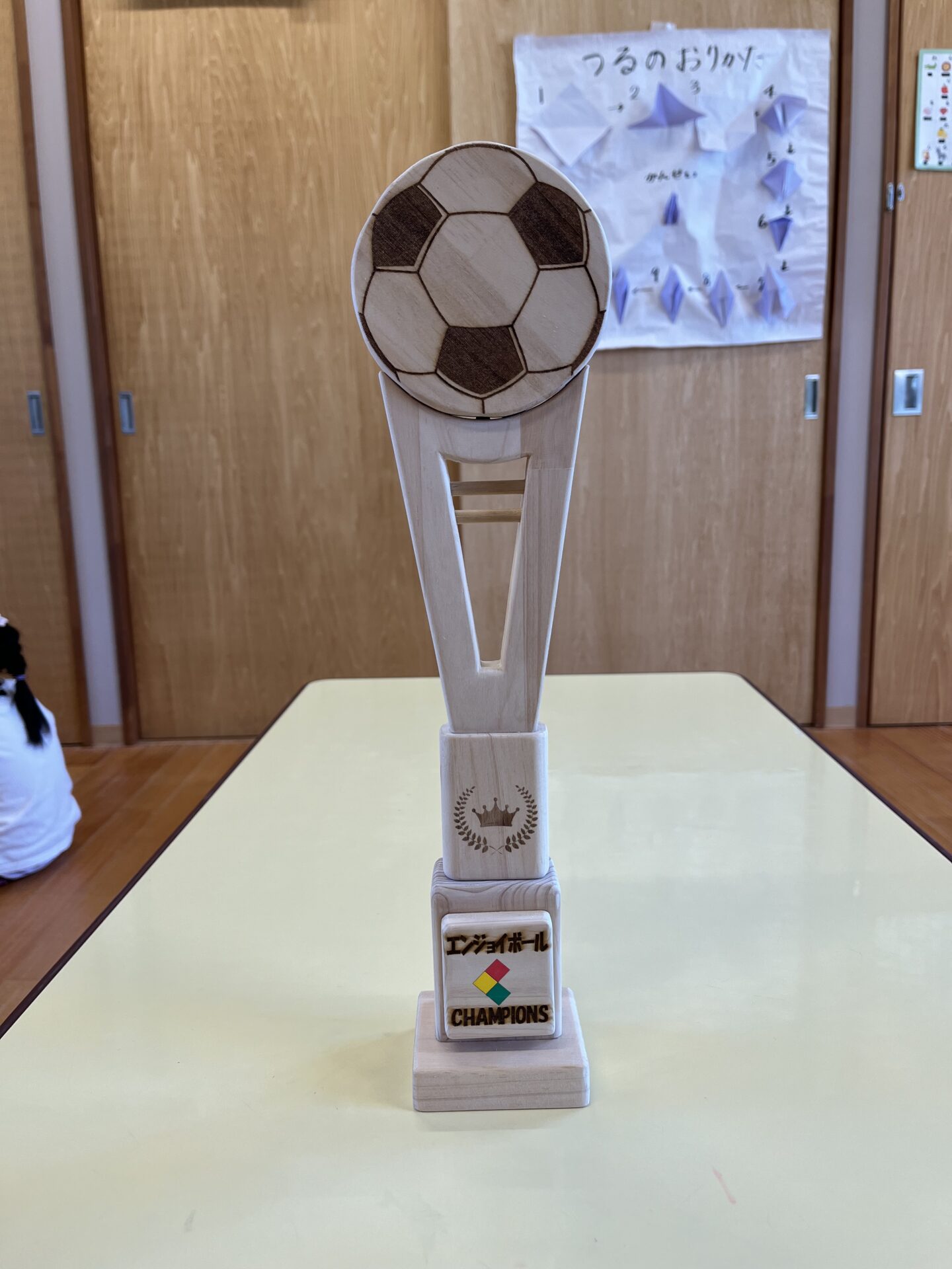 6月2日に実施したエンジョイボールで優勝したチームに、ついに本物のトロフィーが届きました!