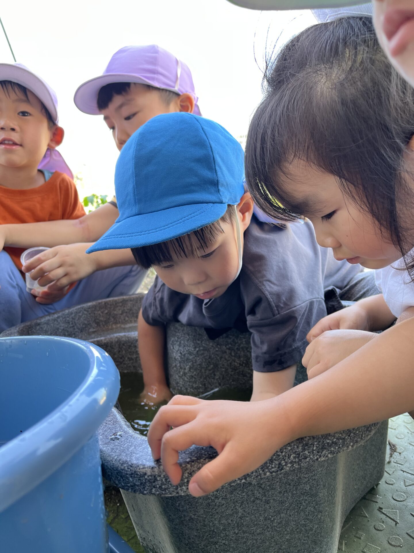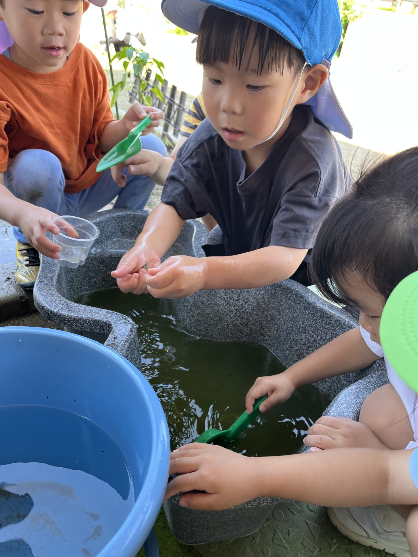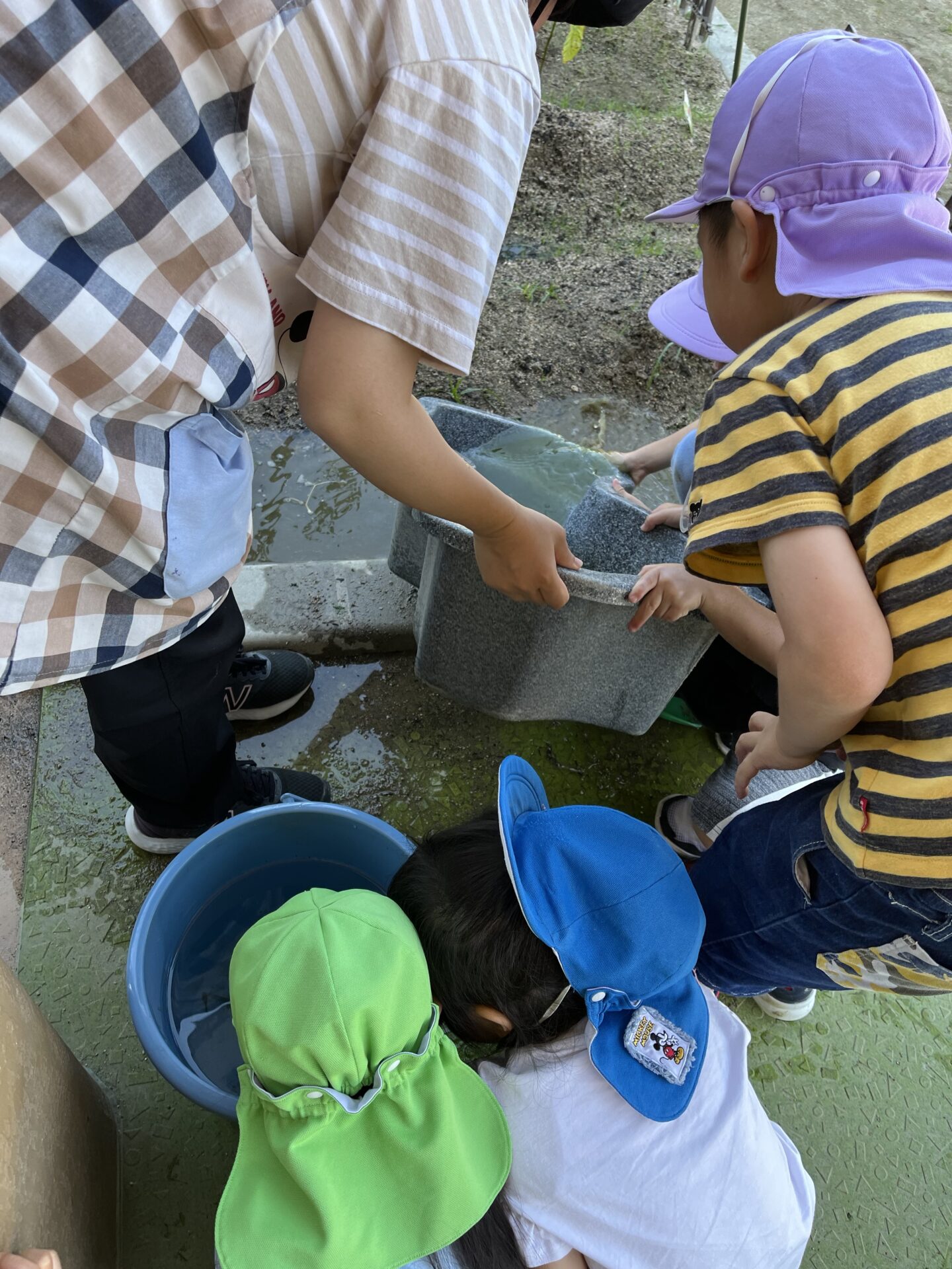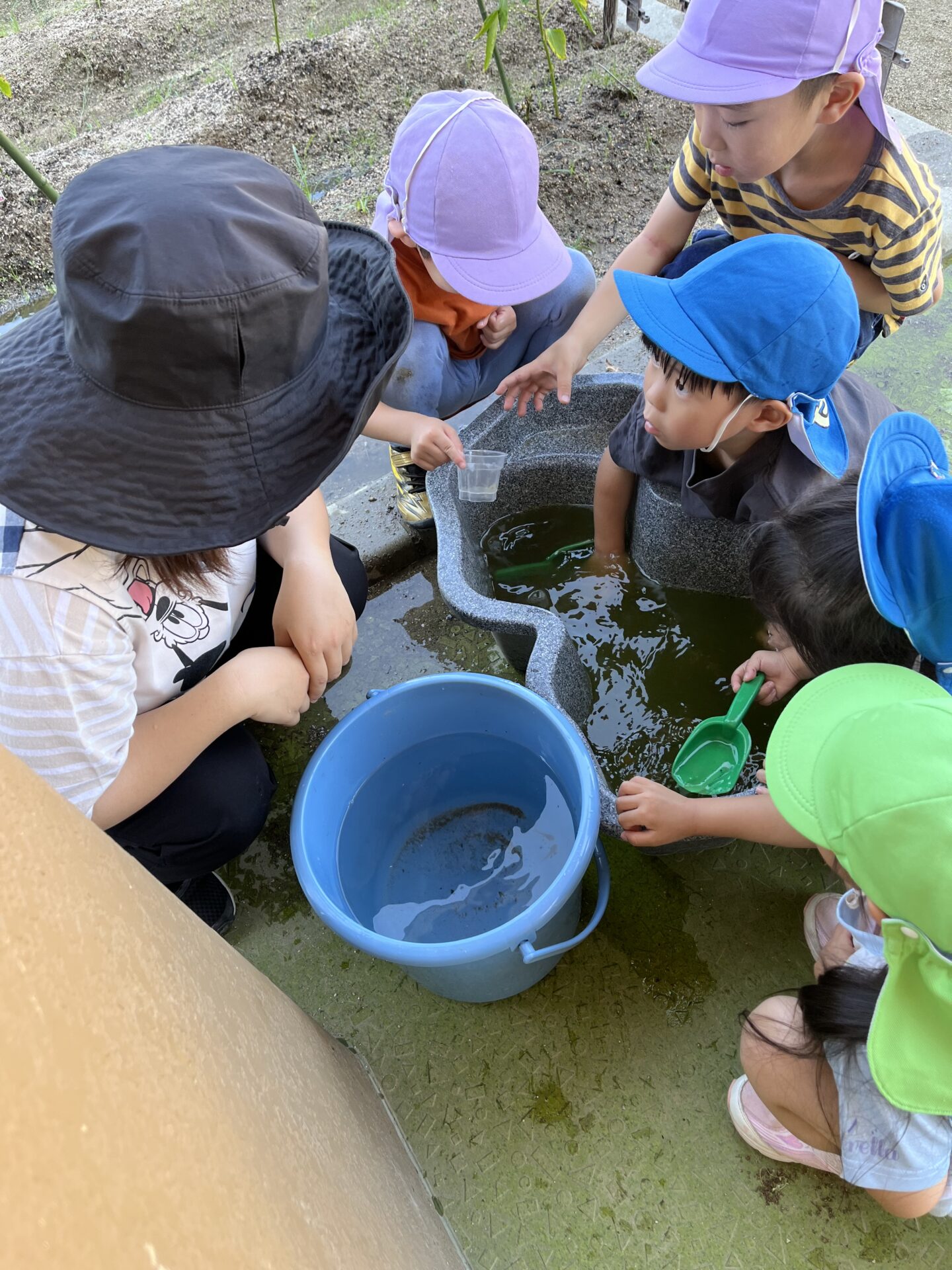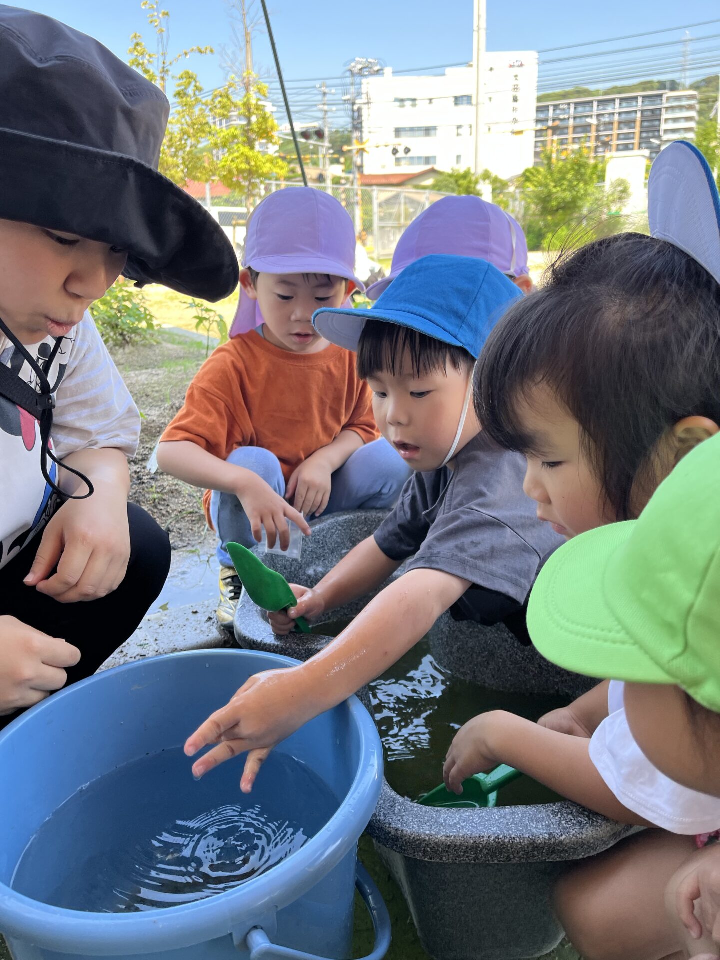 保育士「おたまじゃくしの水換えよ〜」