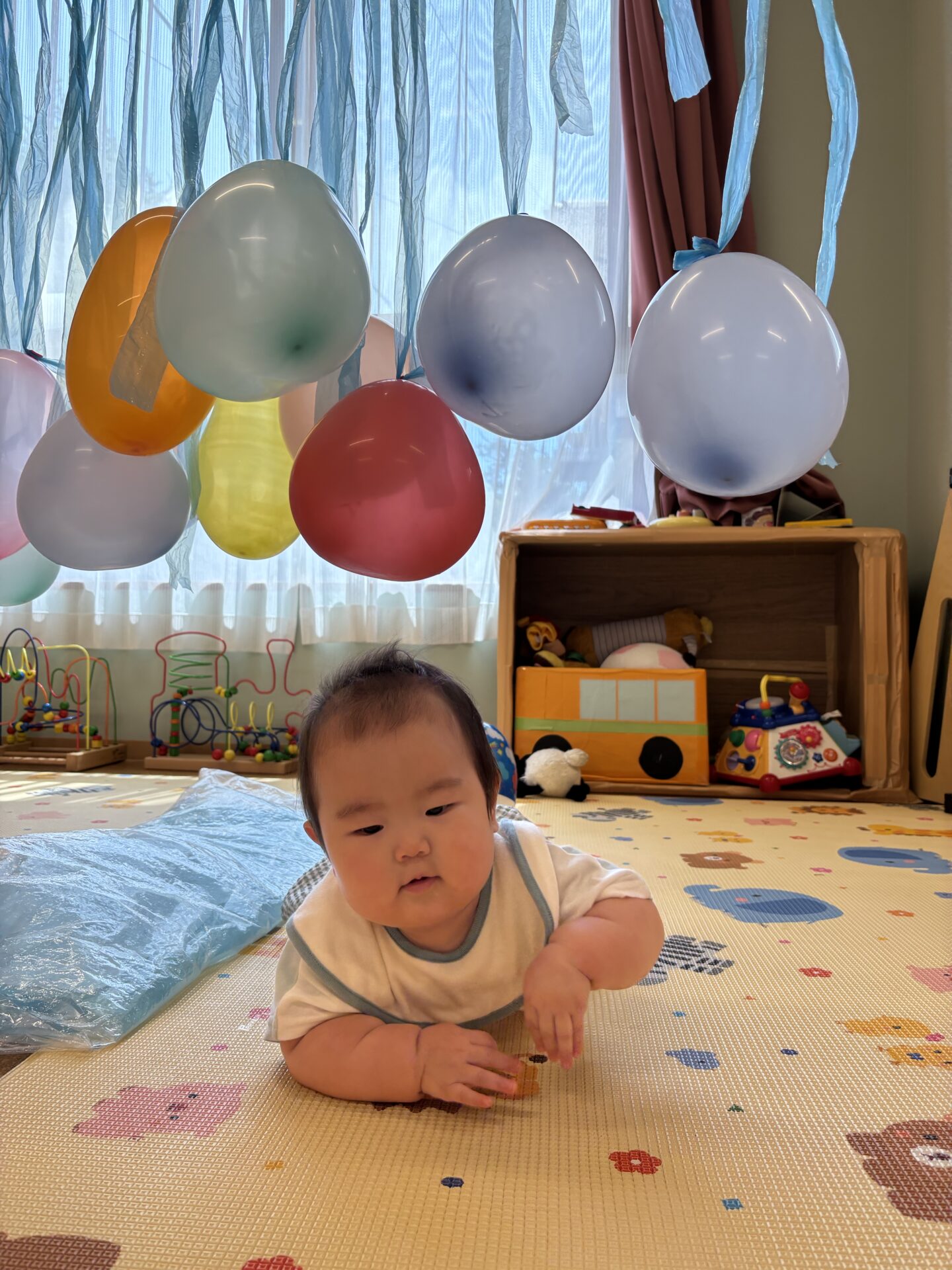紐をビヨンビヨン動かすと、風船🎈が踊り出し、立っちする子は大喜びです🙌