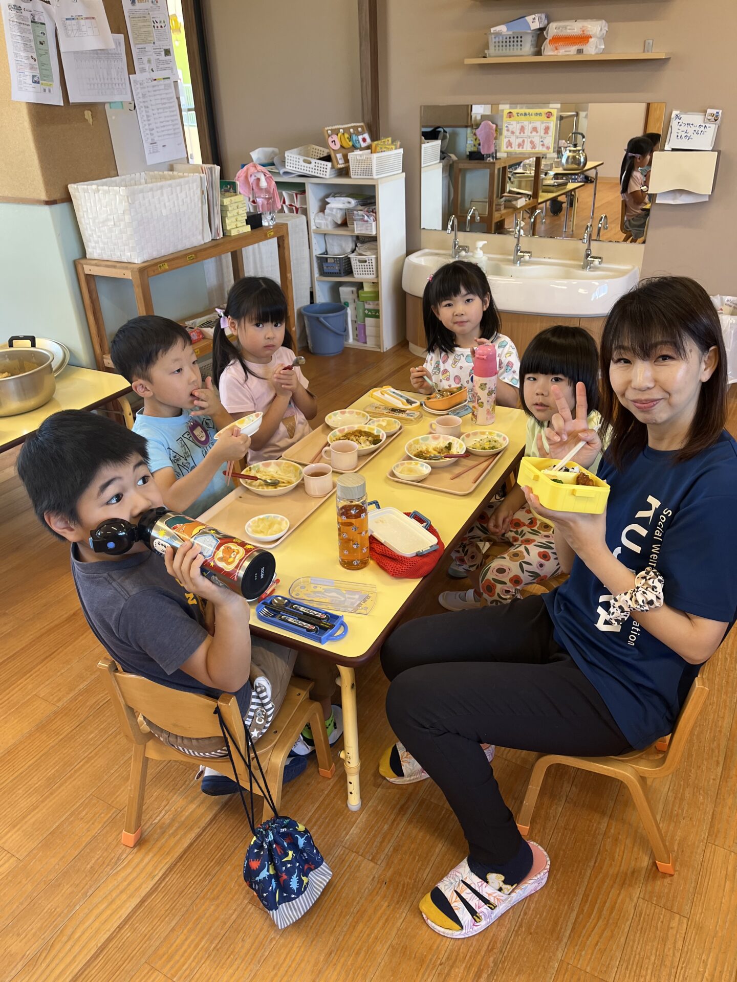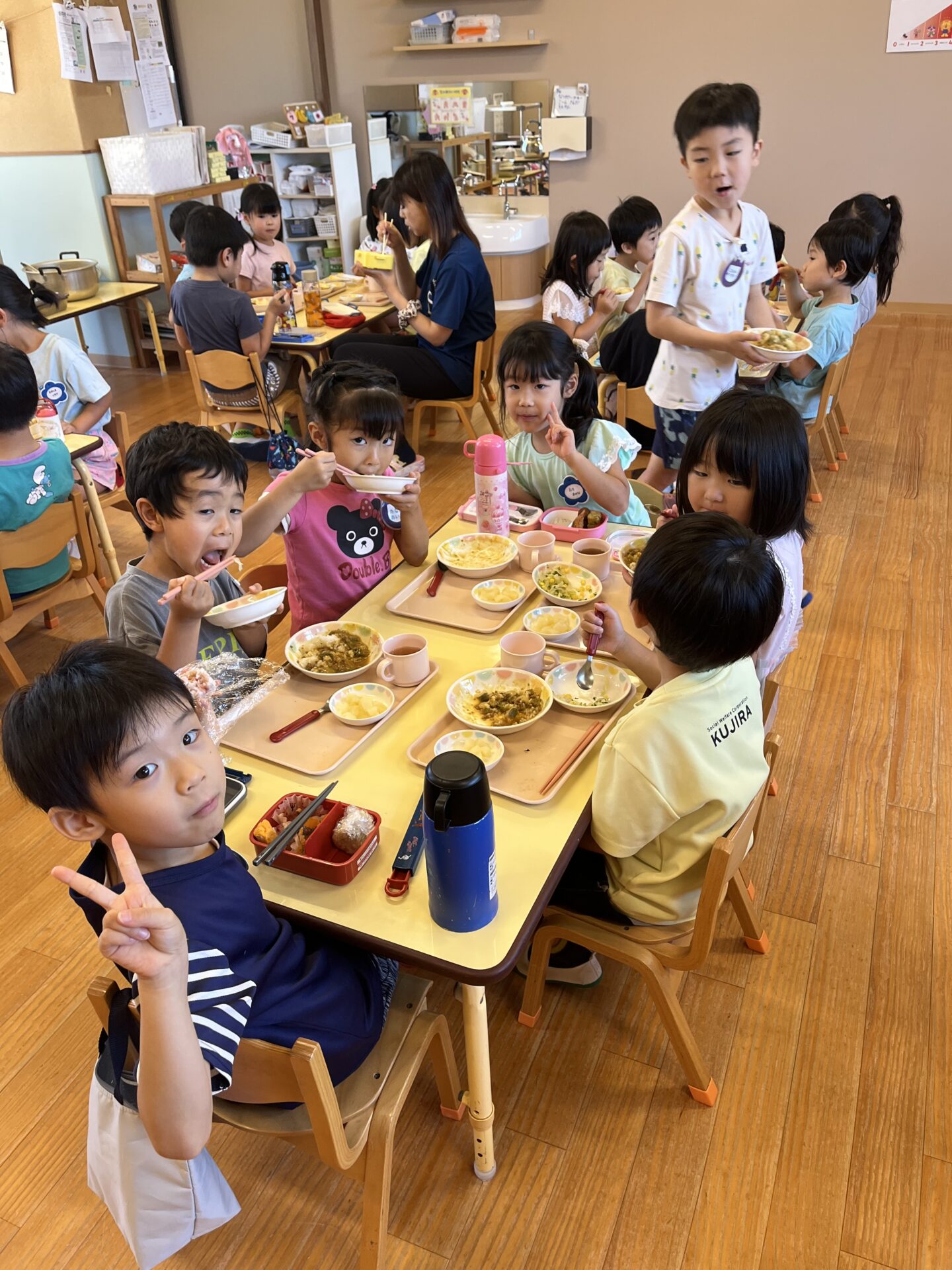 廿日市くじら保育園のお友達は、お弁当を持って遊びにきていたので、一緒にご飯を食べて、少し遊んで帰っていきました。