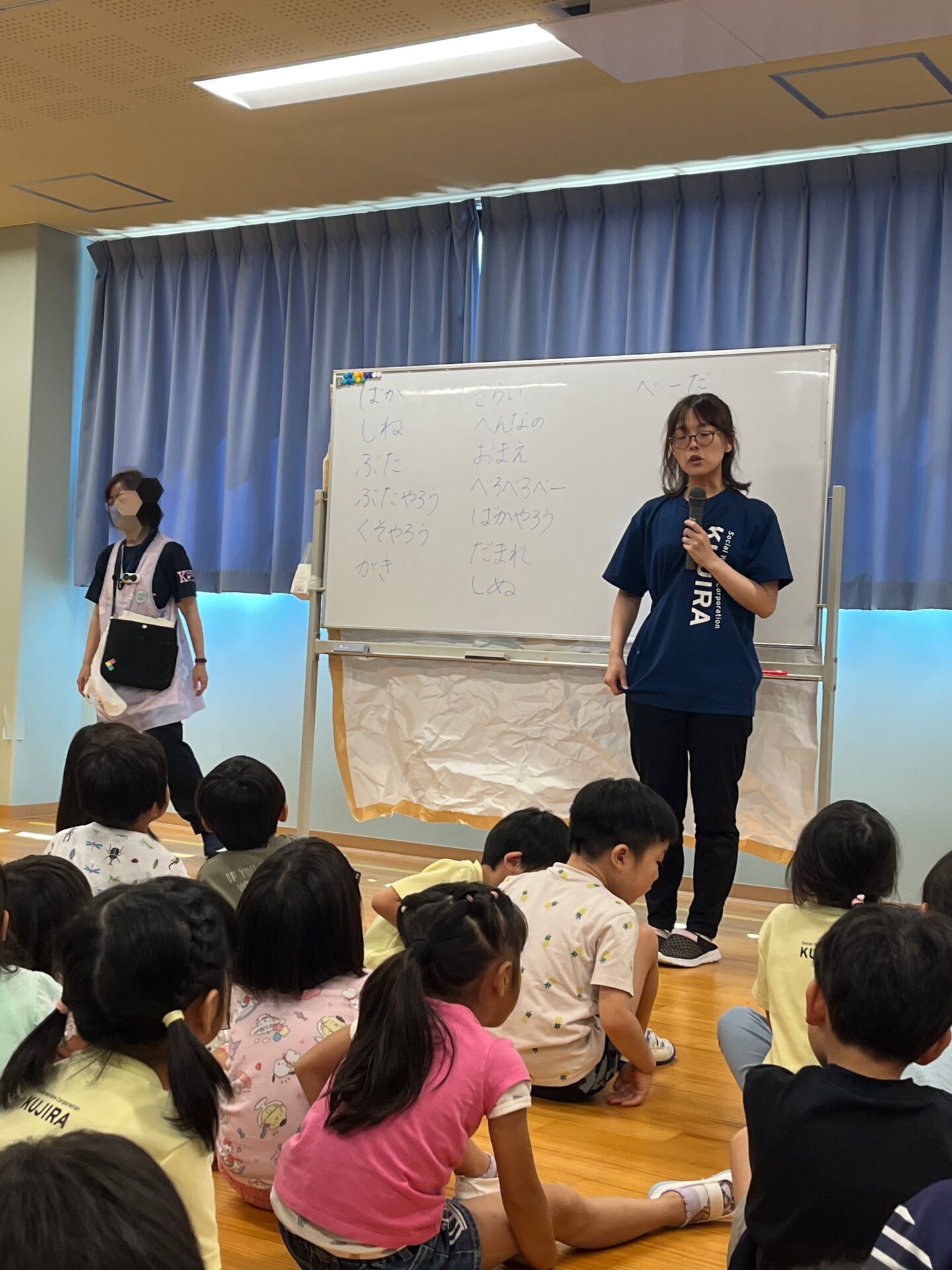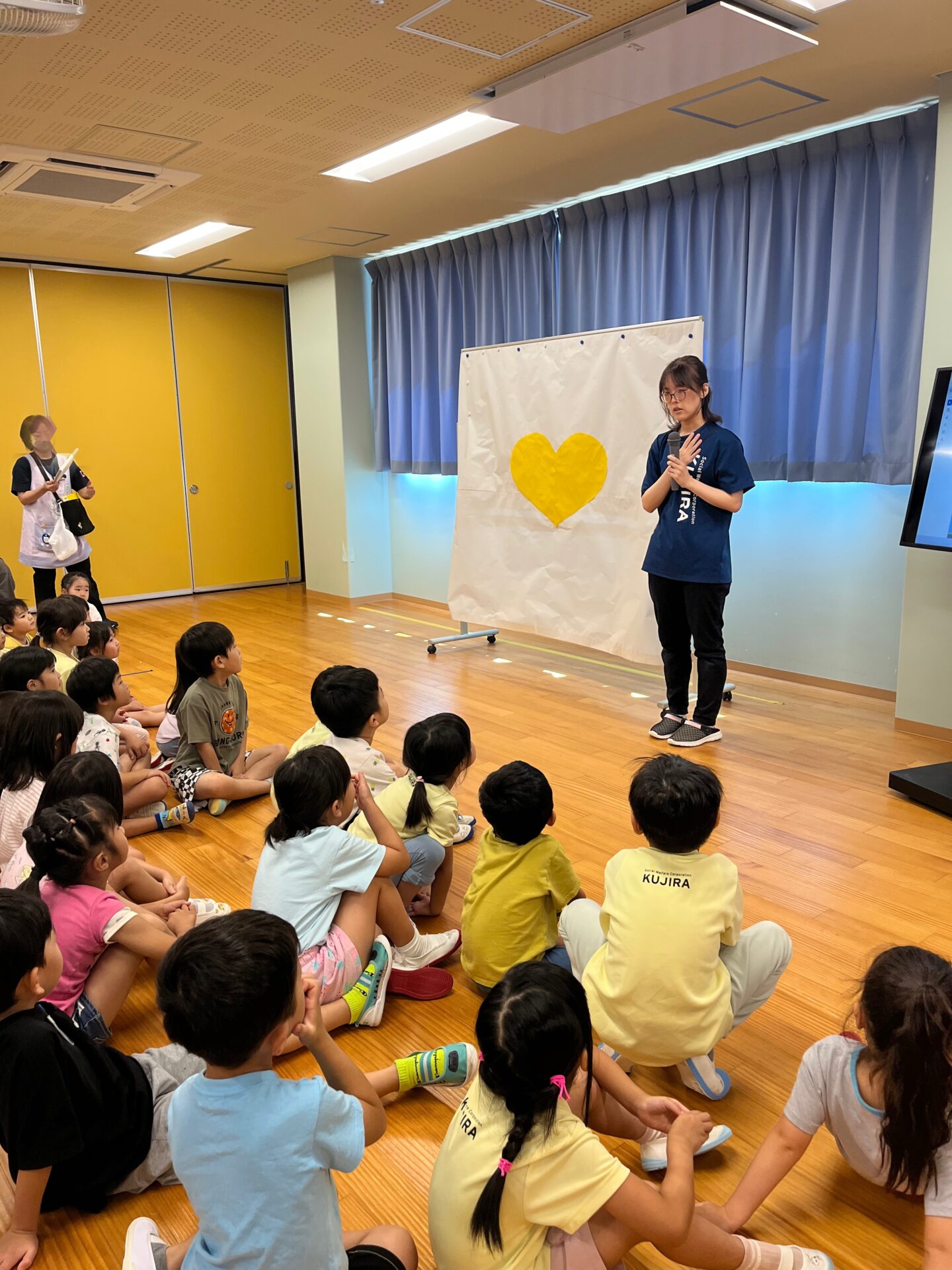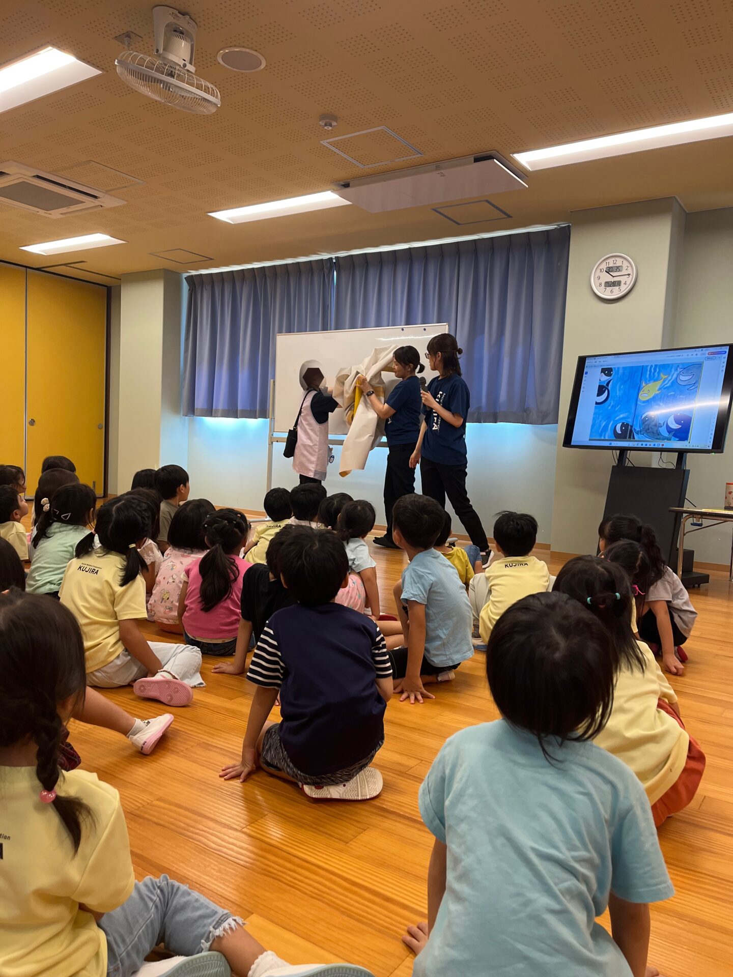 絵本「かわいいきいろのクジラちゃん」のものがたりを、先生たちの朗読で聴きました。