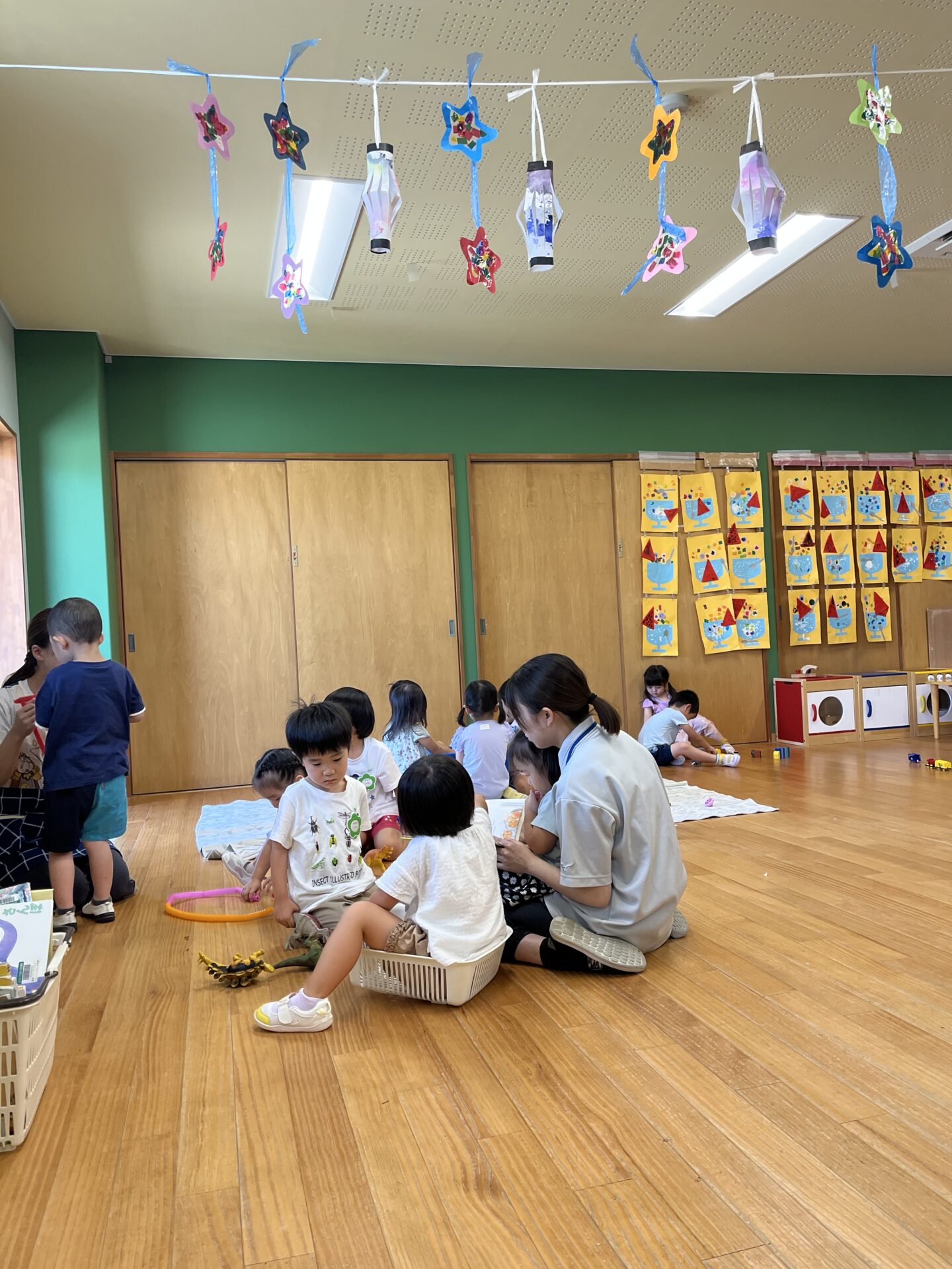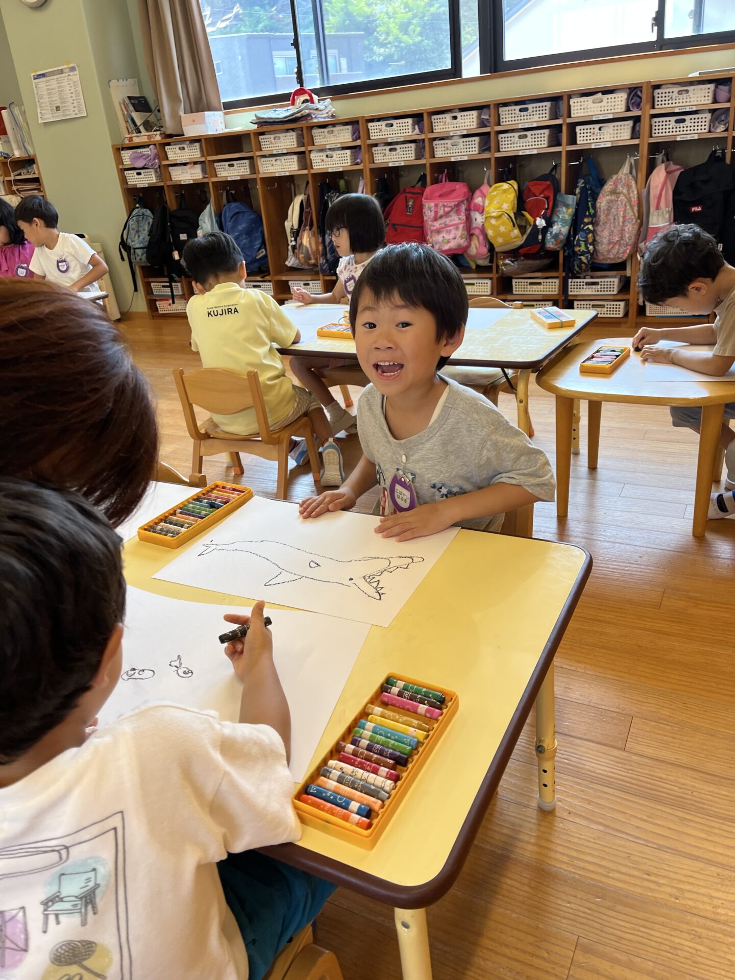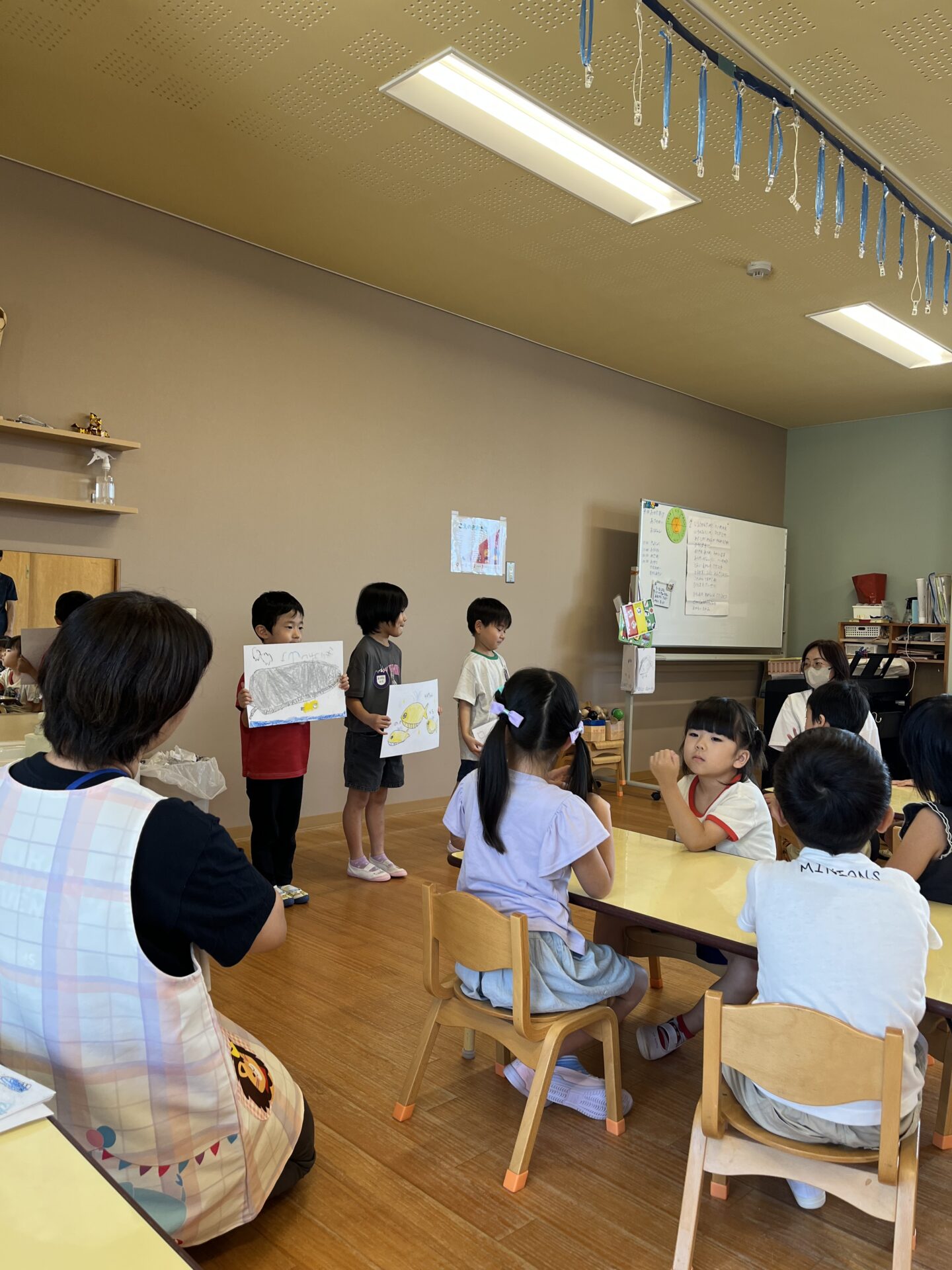 5歳児くじらチームと3歳児にじチームに、それぞれ入室していただきました。