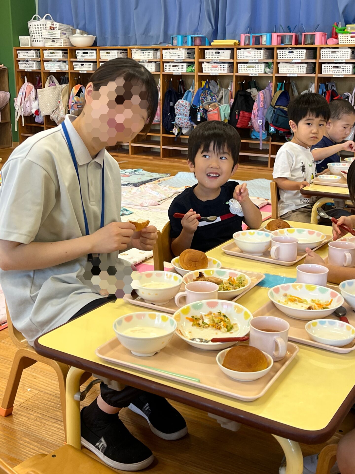 人懐っこい廿保っ子たちは、人見知りすることもなく、最初っから積極的に先生方にアピール!笑。すぐにスキンシップを求めたり、お膝に抱っこしてもらったりしていました。