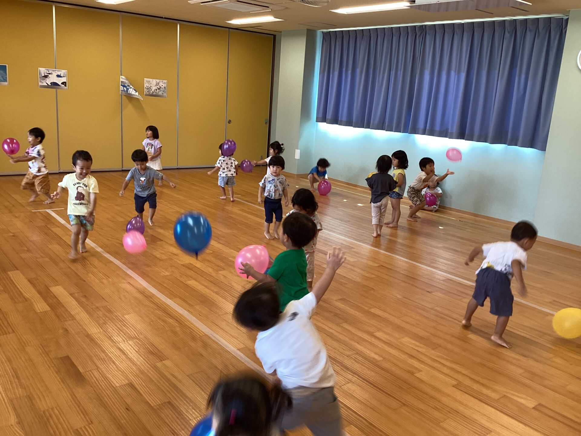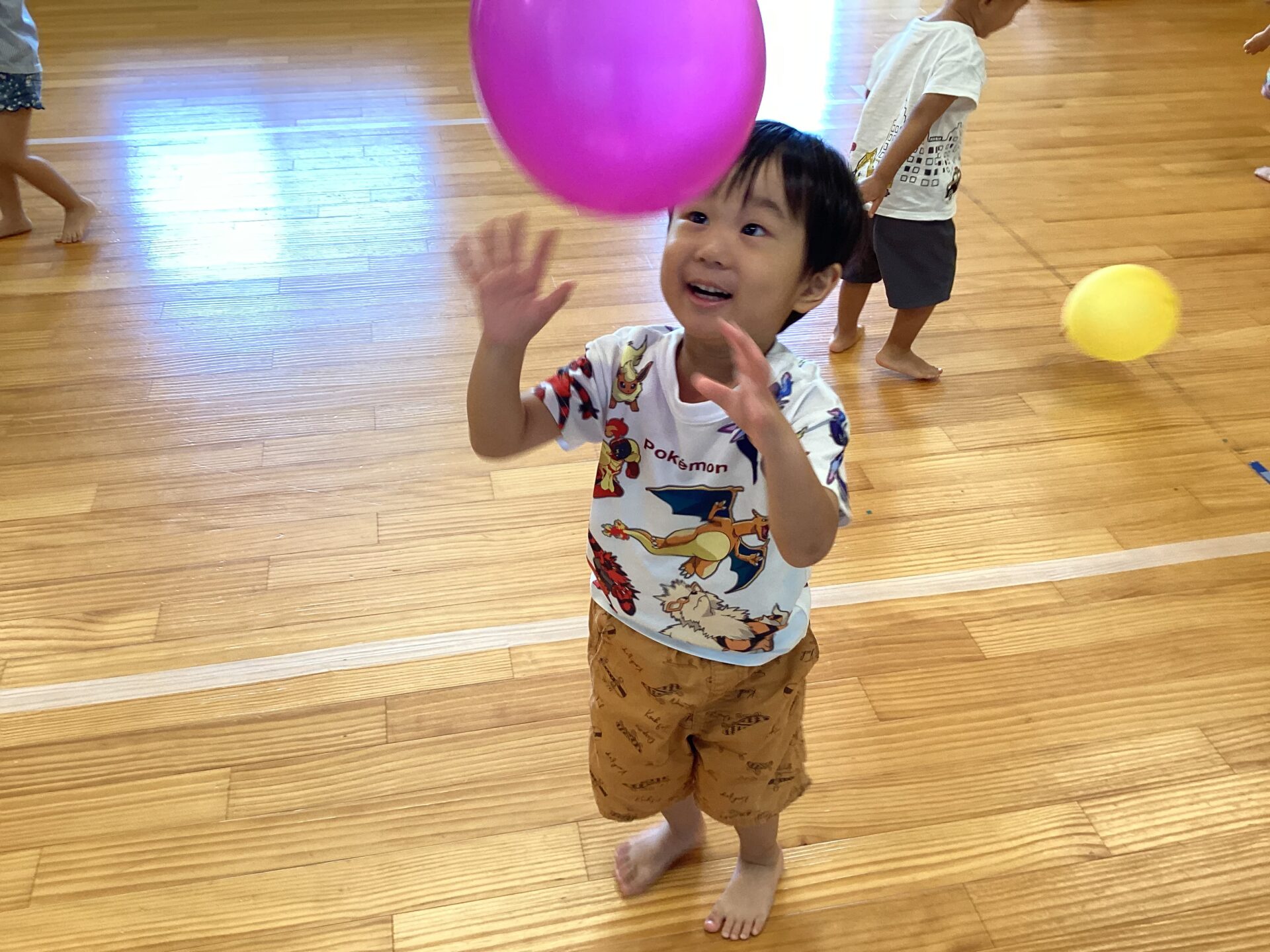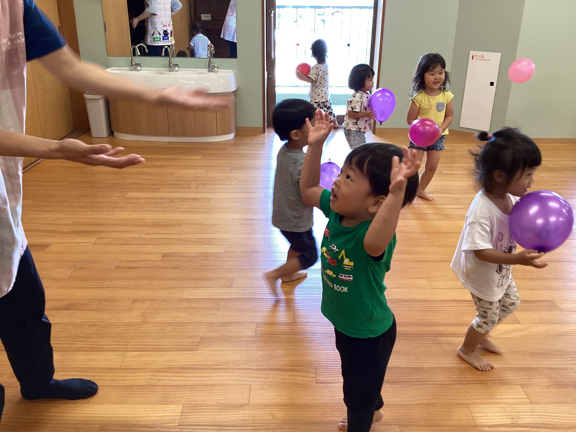 バランスの取り方が上手になり、風船遊びもただ投げるだけの遊びから、投げて掴むまでできるようになってきている子どもたちの成長に良い意味で驚かされています。