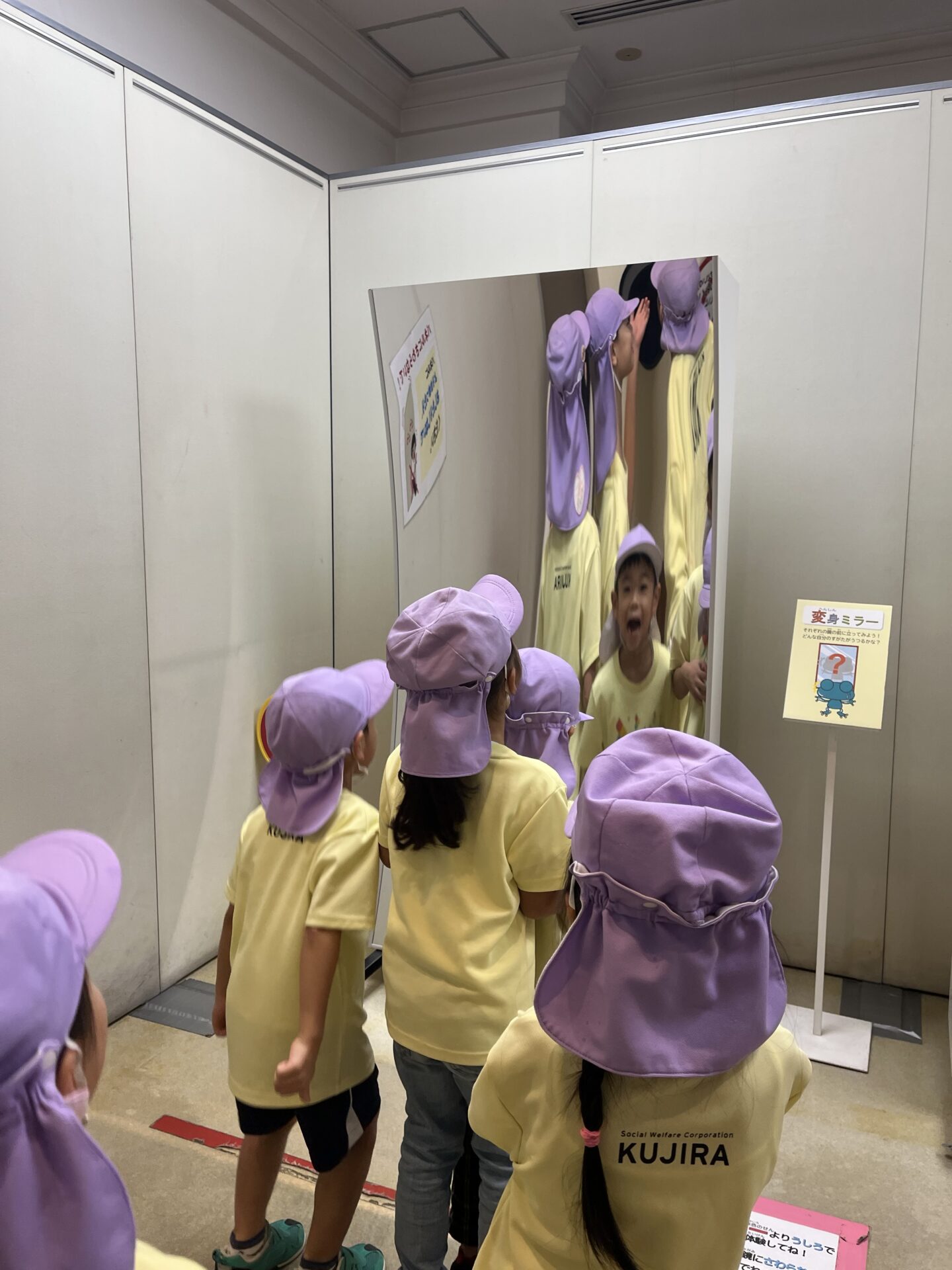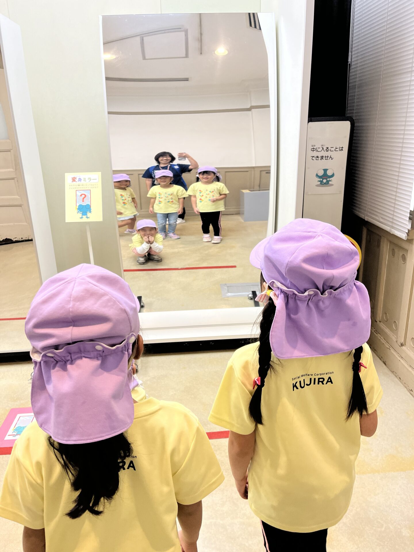 太って見えたり、背高のっぽになったり、不思議な鏡に大笑いしました。