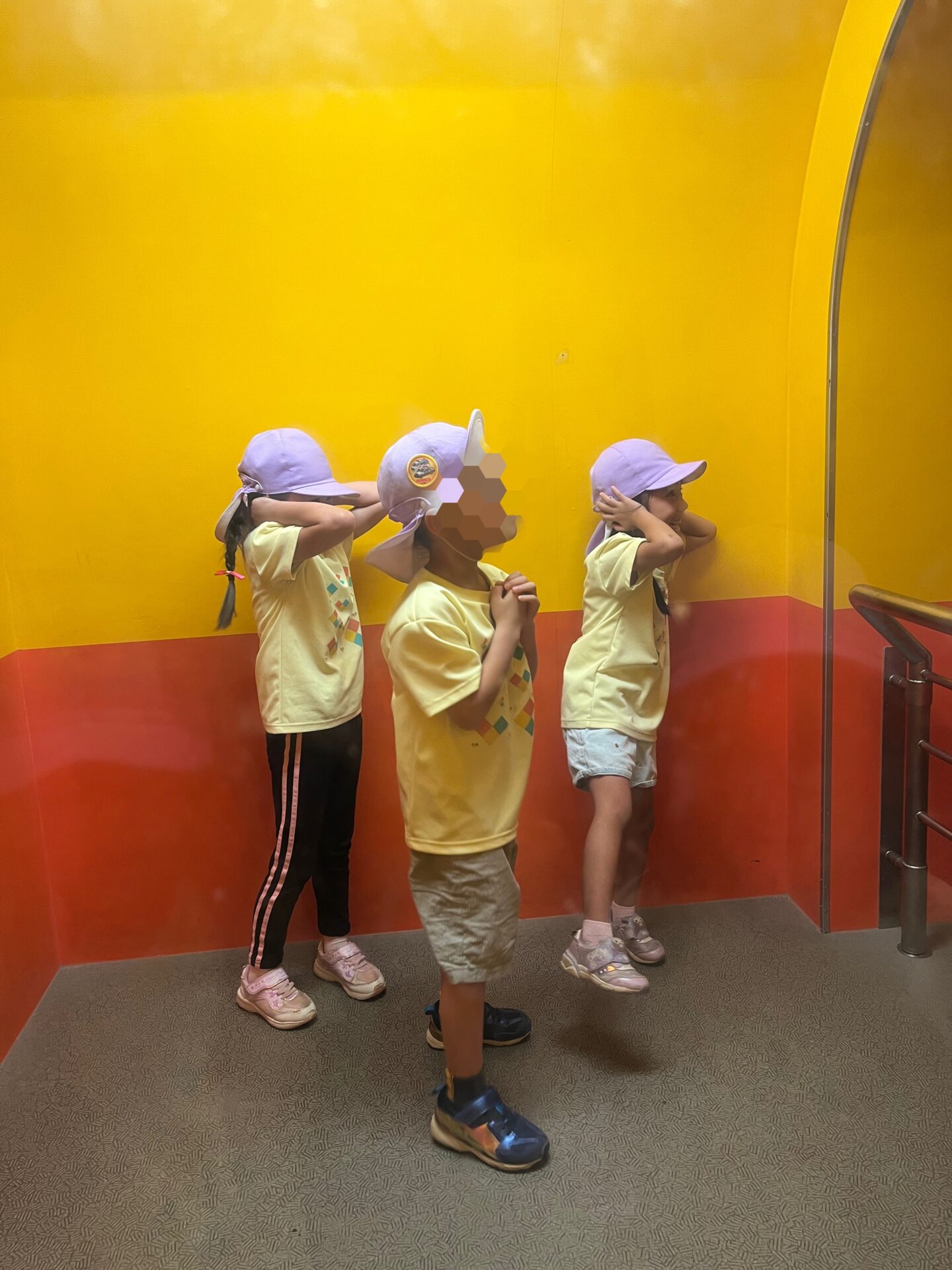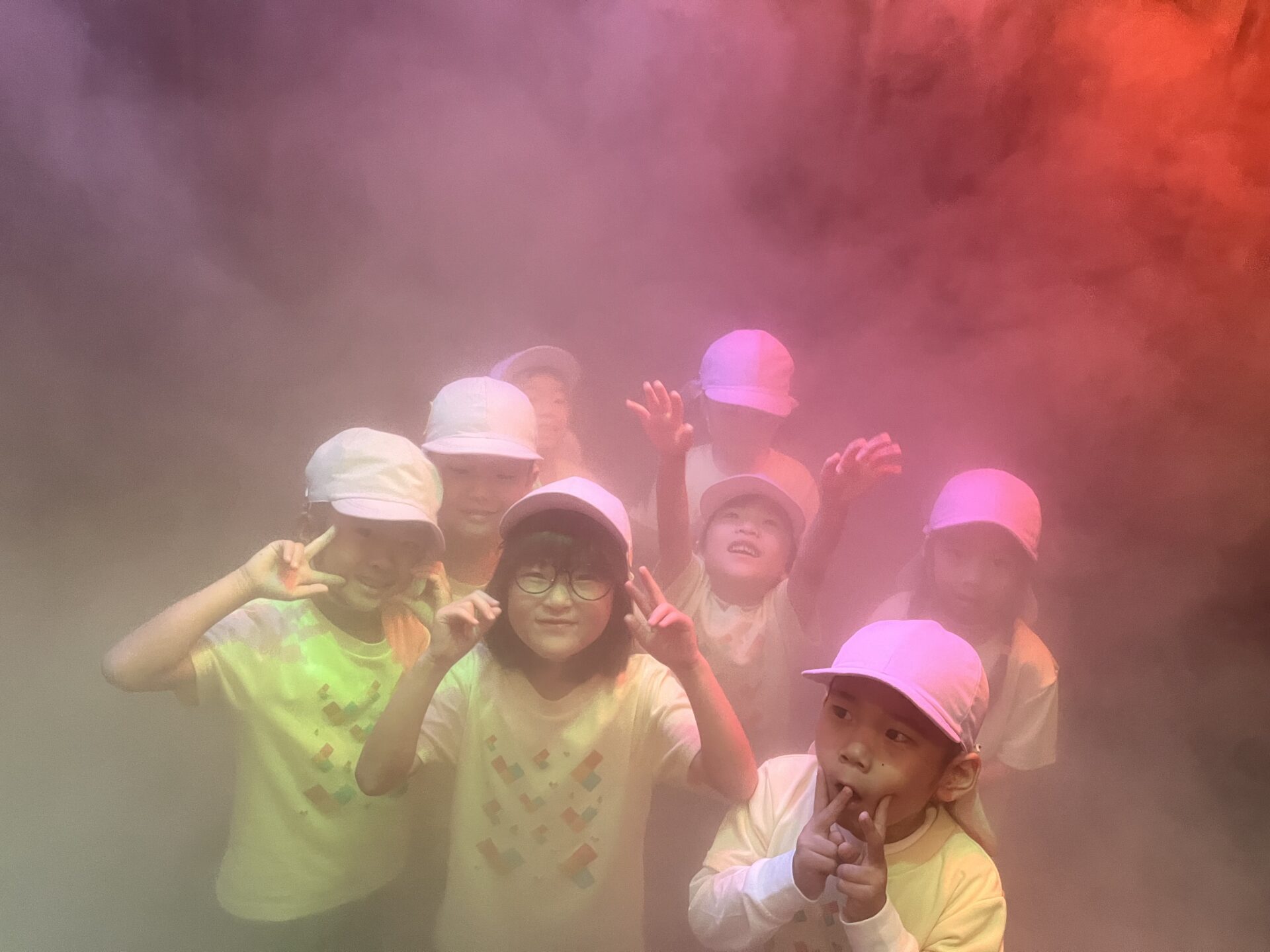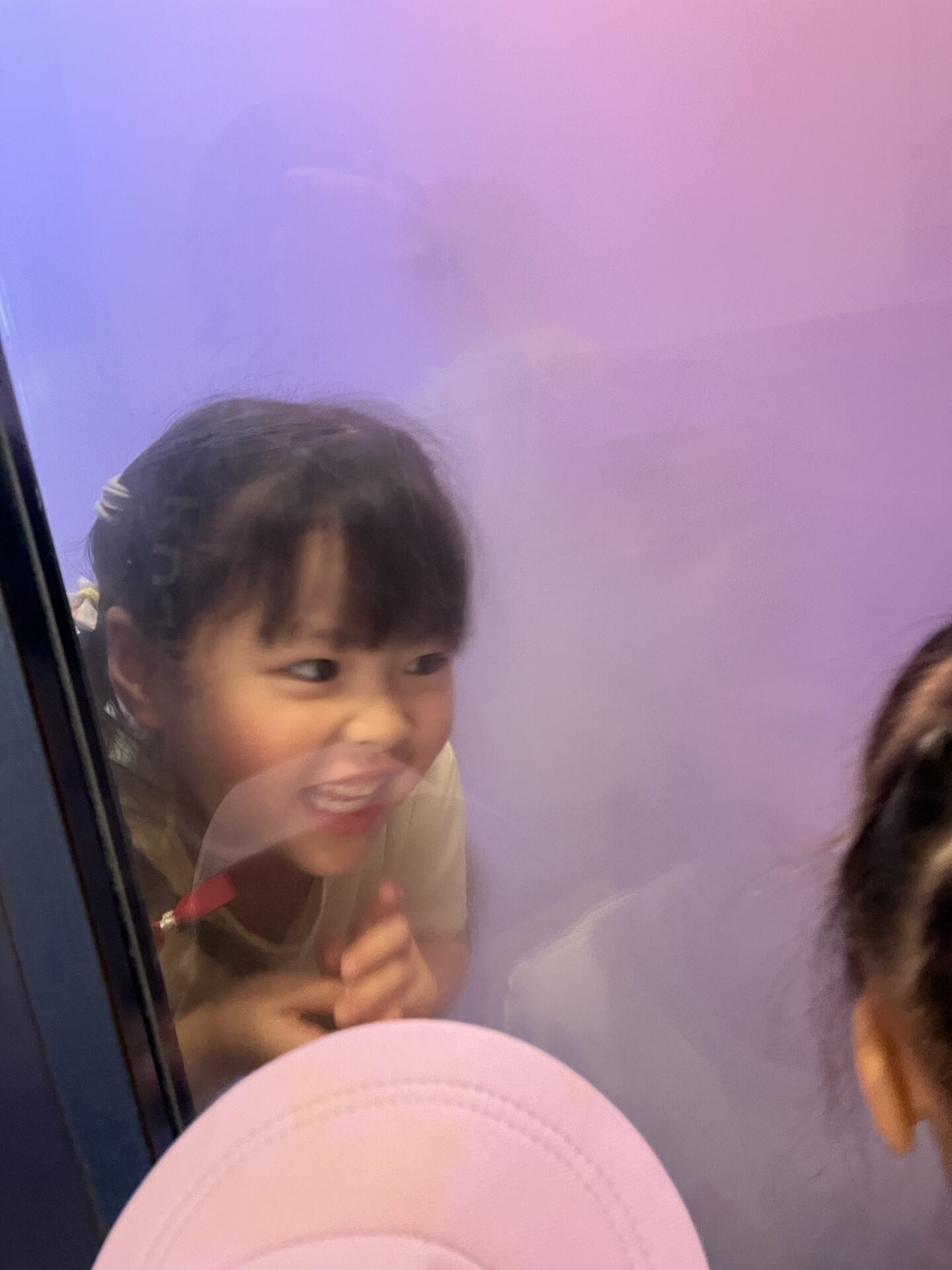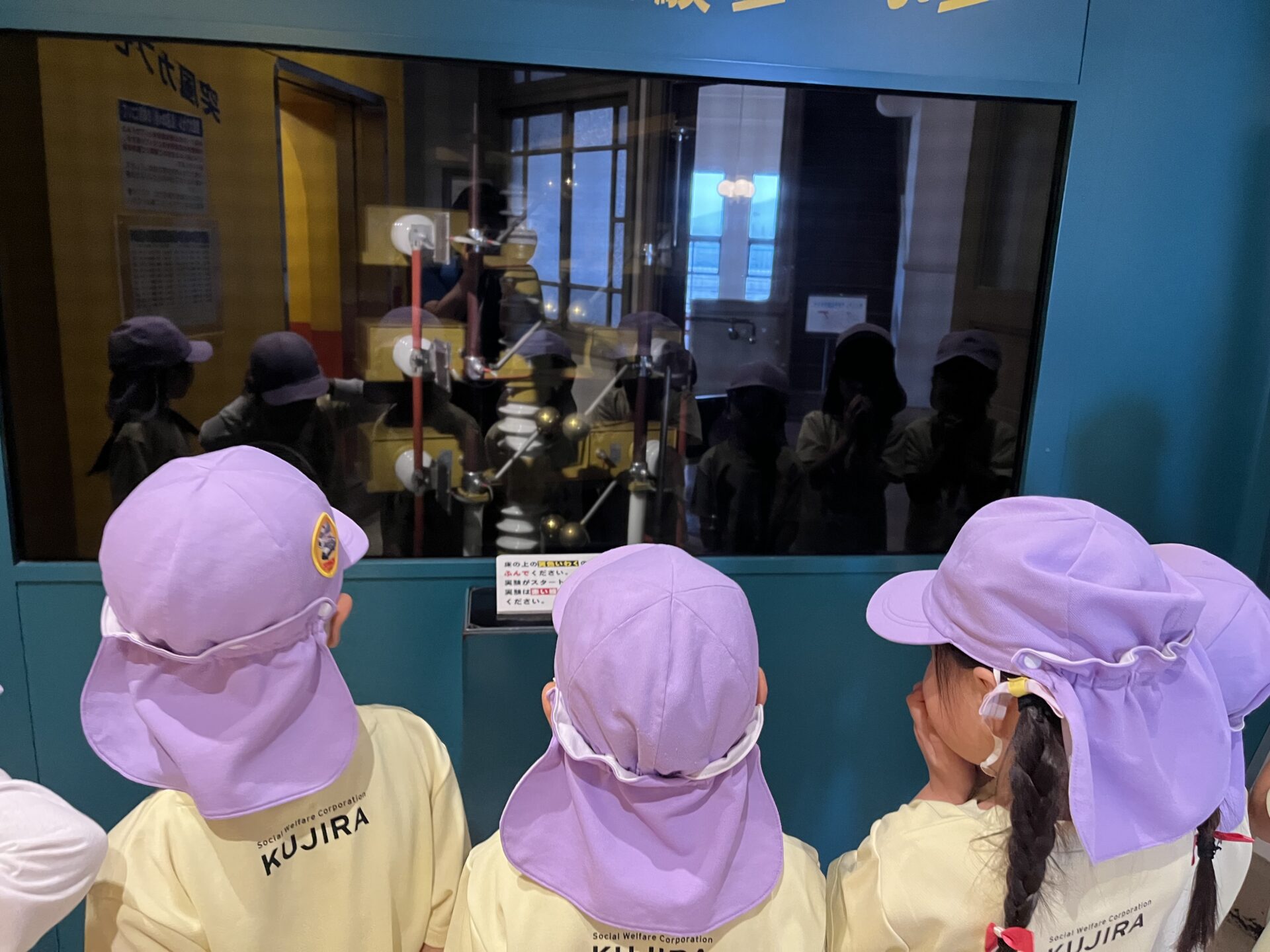 次は、雷を発生させる装置の前で、稲妻の音を聞き、ピカッ⚡️と光る光景にびっくりして、思わず耳を塞ぐくじらチームさん