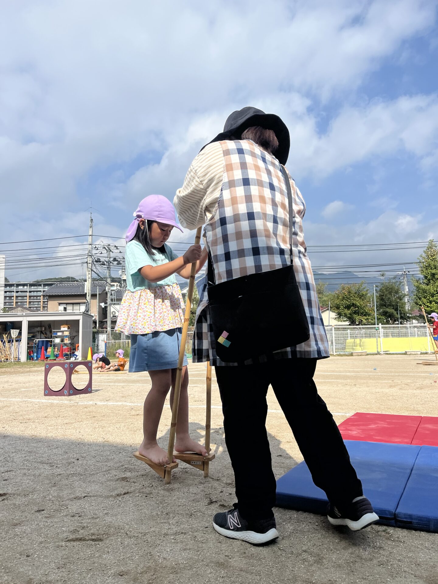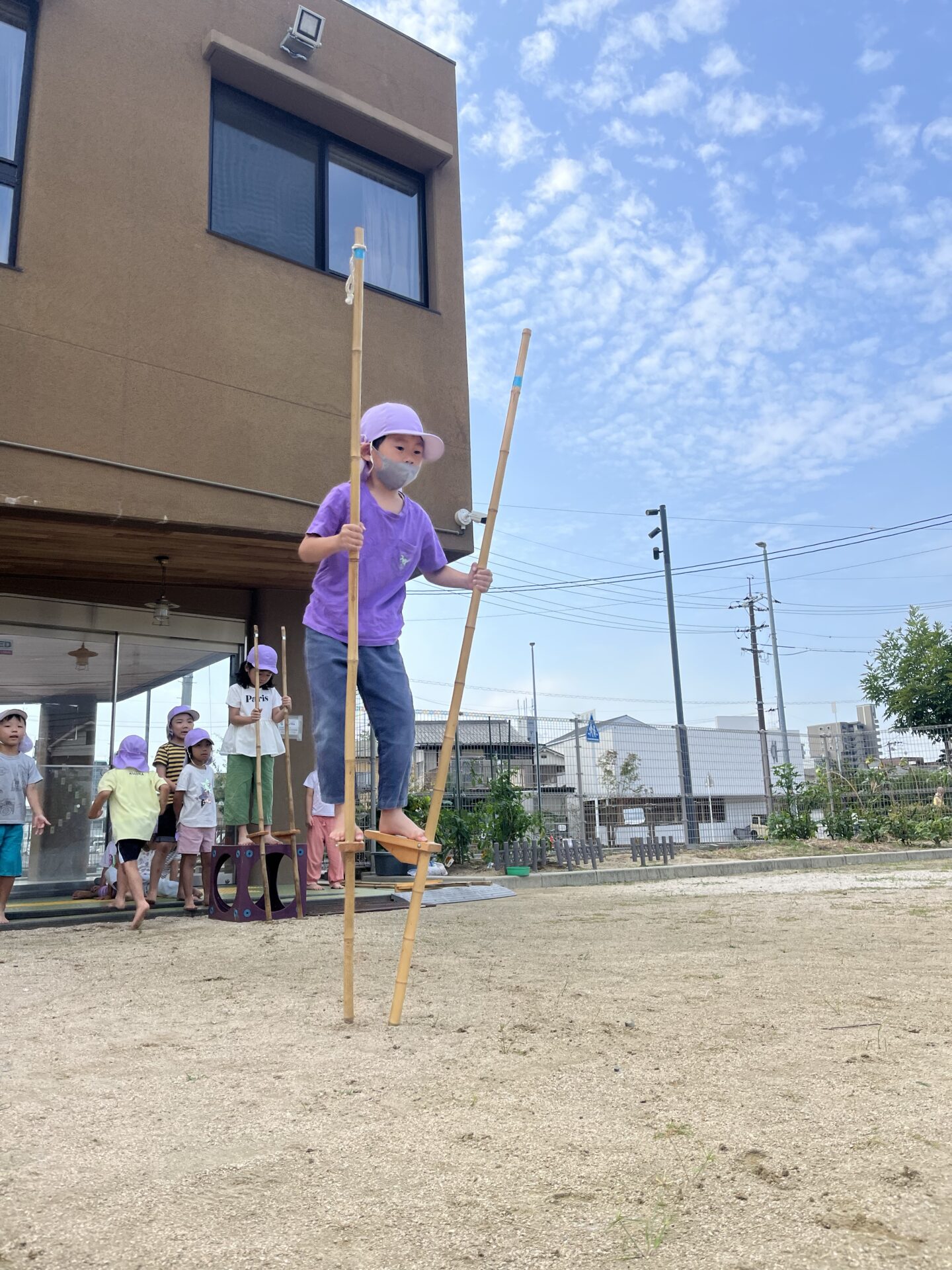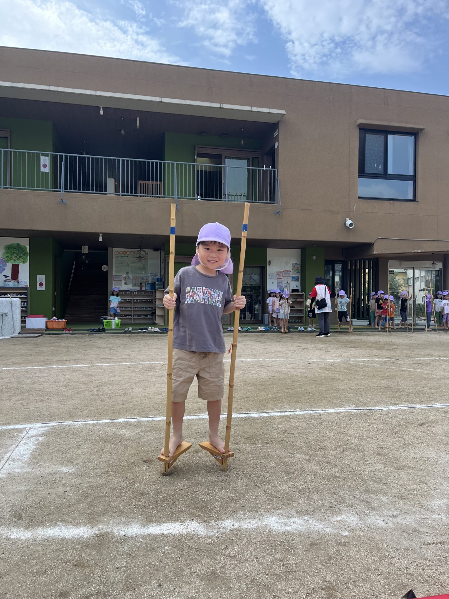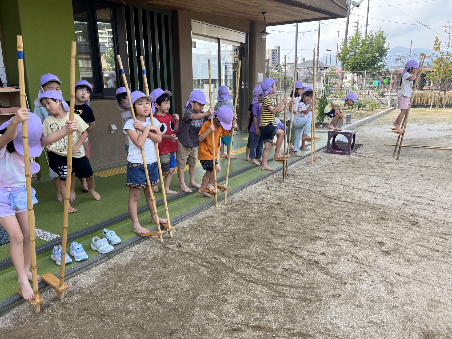 くじらチームは、今年の運動会も、廿日市保育園伝統の竹馬にチャレンジします。