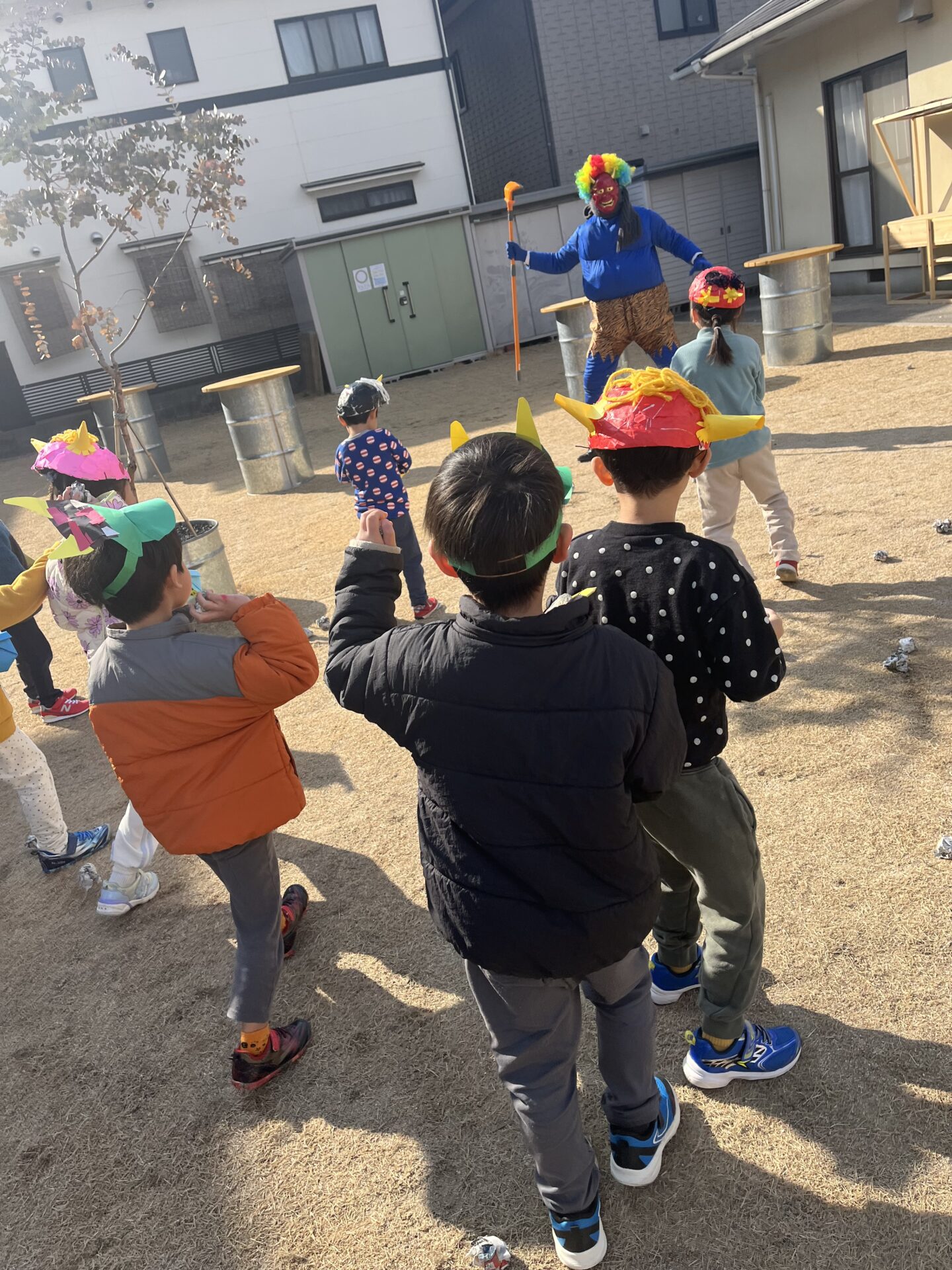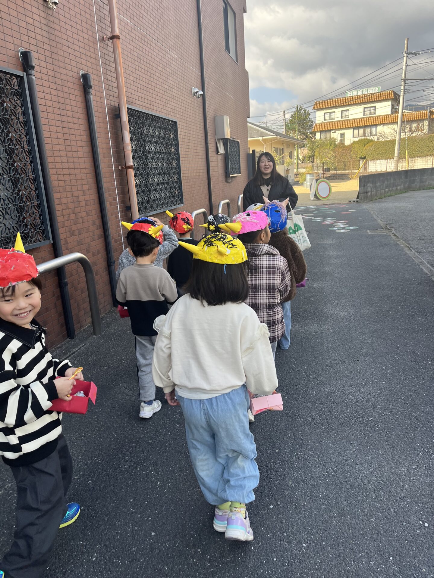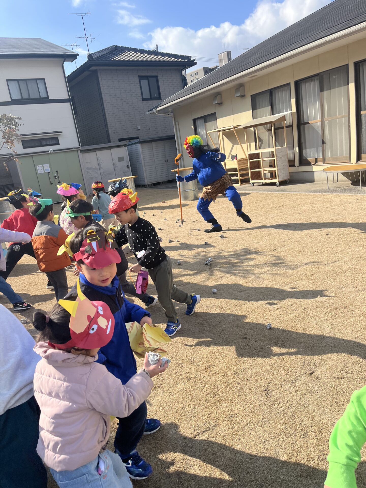 廿日市保育園でも賑やかに節分会をしていたら、町の人がやってきて、