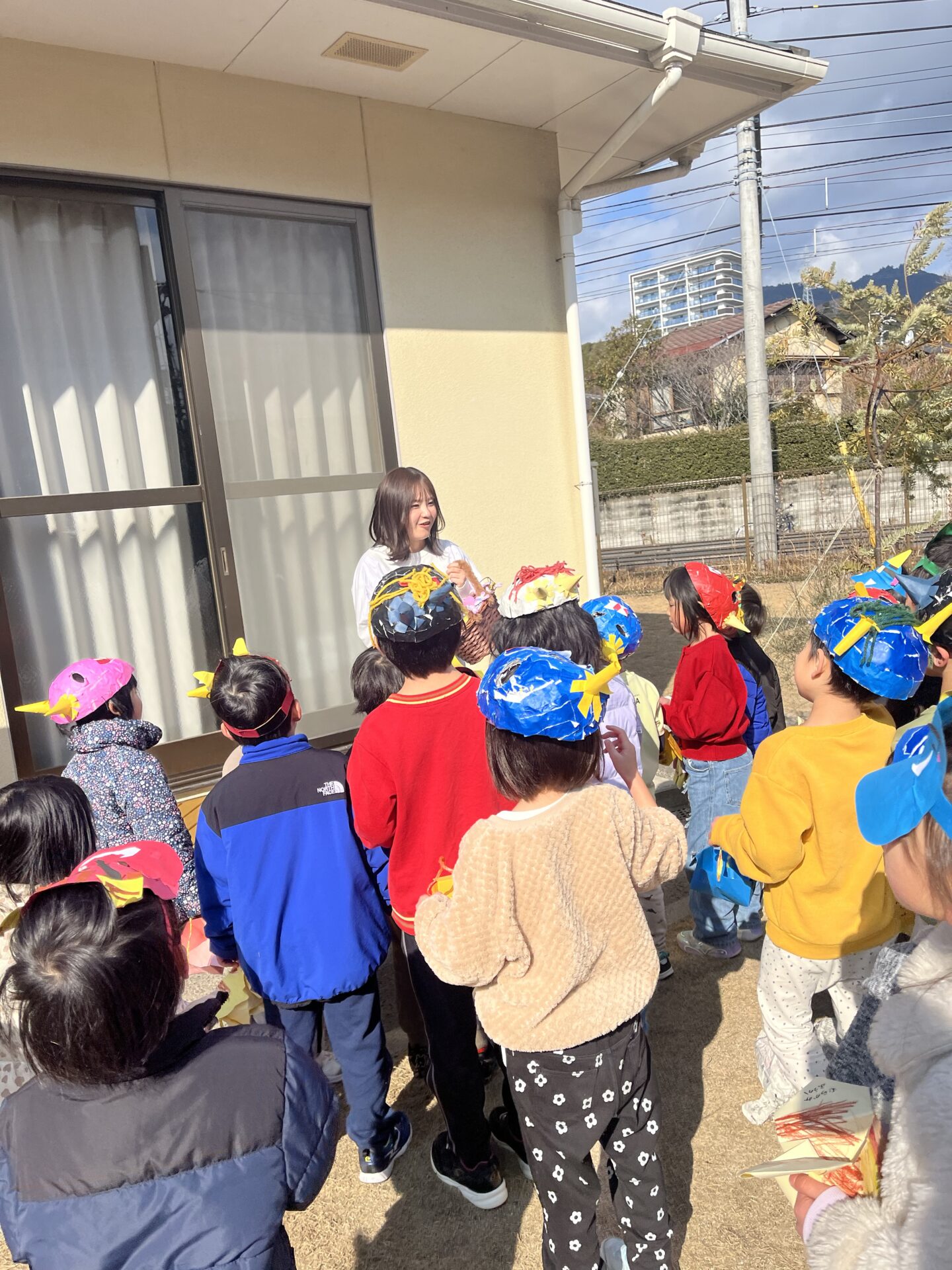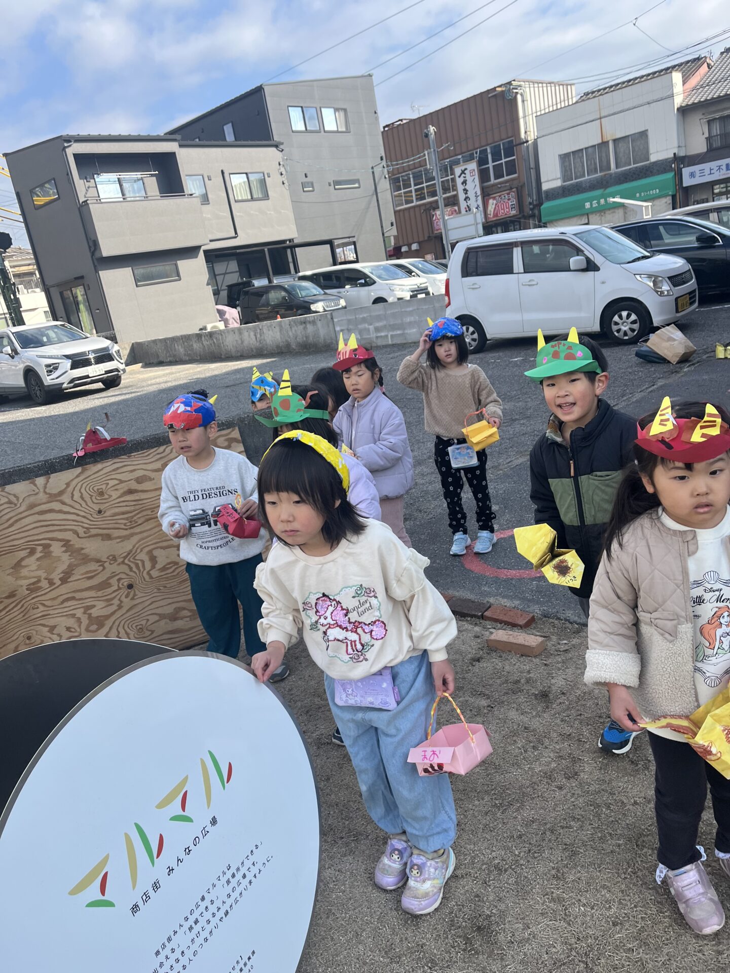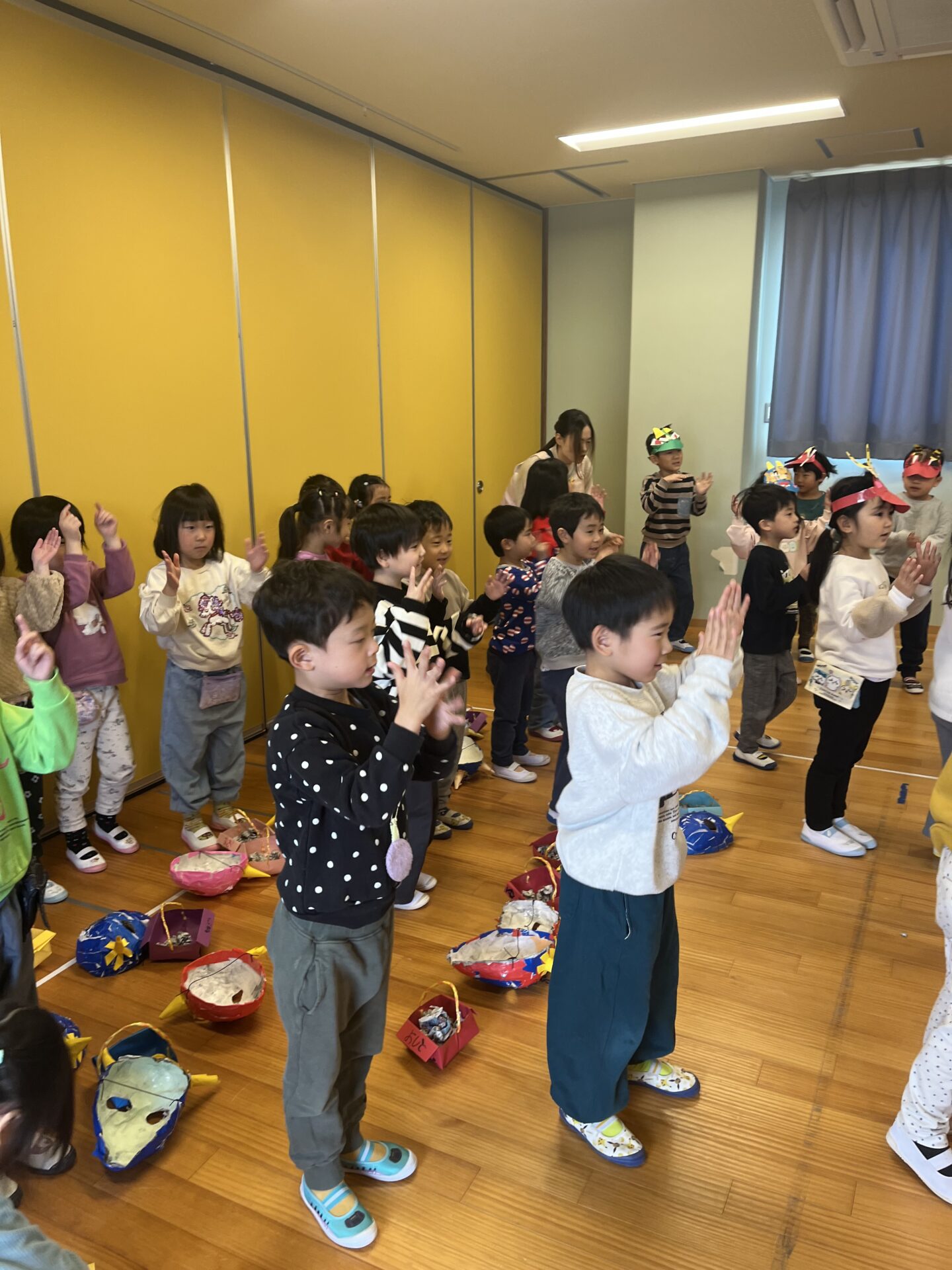 廿日市保育園でも賑やかに節分会をしていたら、町の人がやってきて、