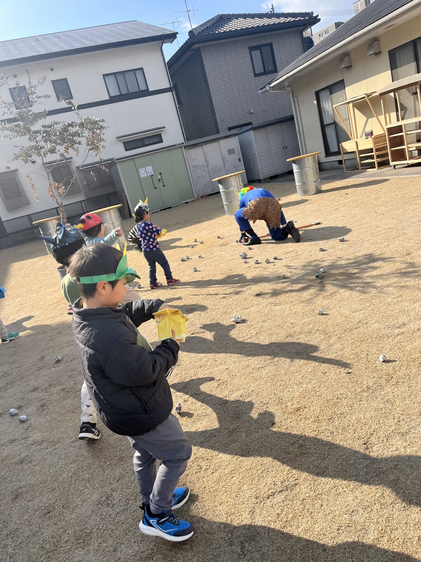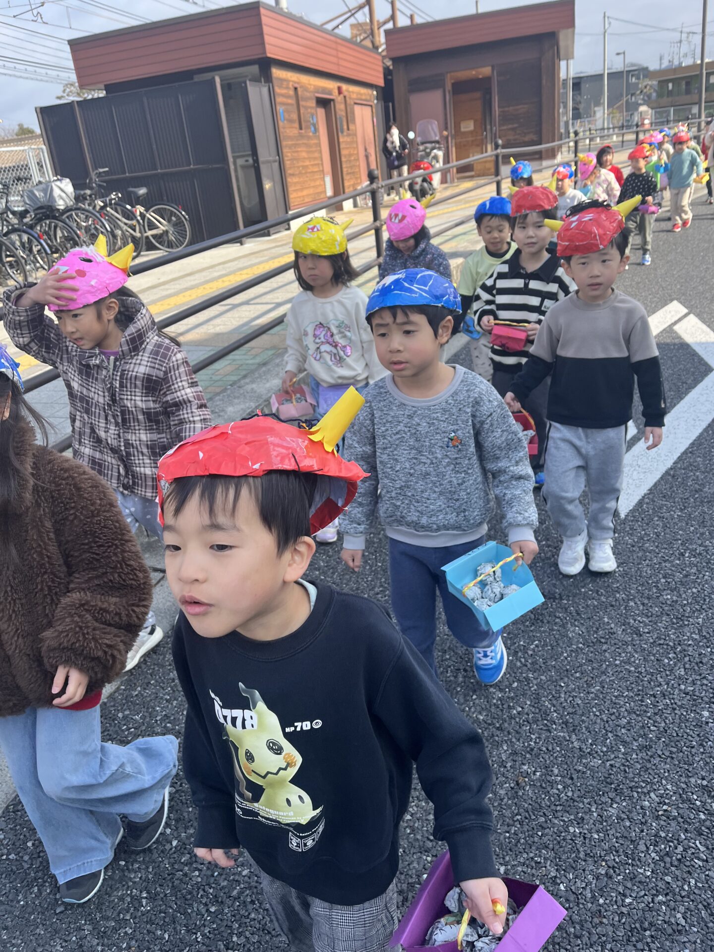 マルマルの中の集会所の中では、どうやらおじいちゃん、おばあちゃん達が「100歳体操」を楽しんでいたそうですが、鬼に囚われたようで、カーテンが締め切られていました💦とても心配です。豆まき、がんばりました!