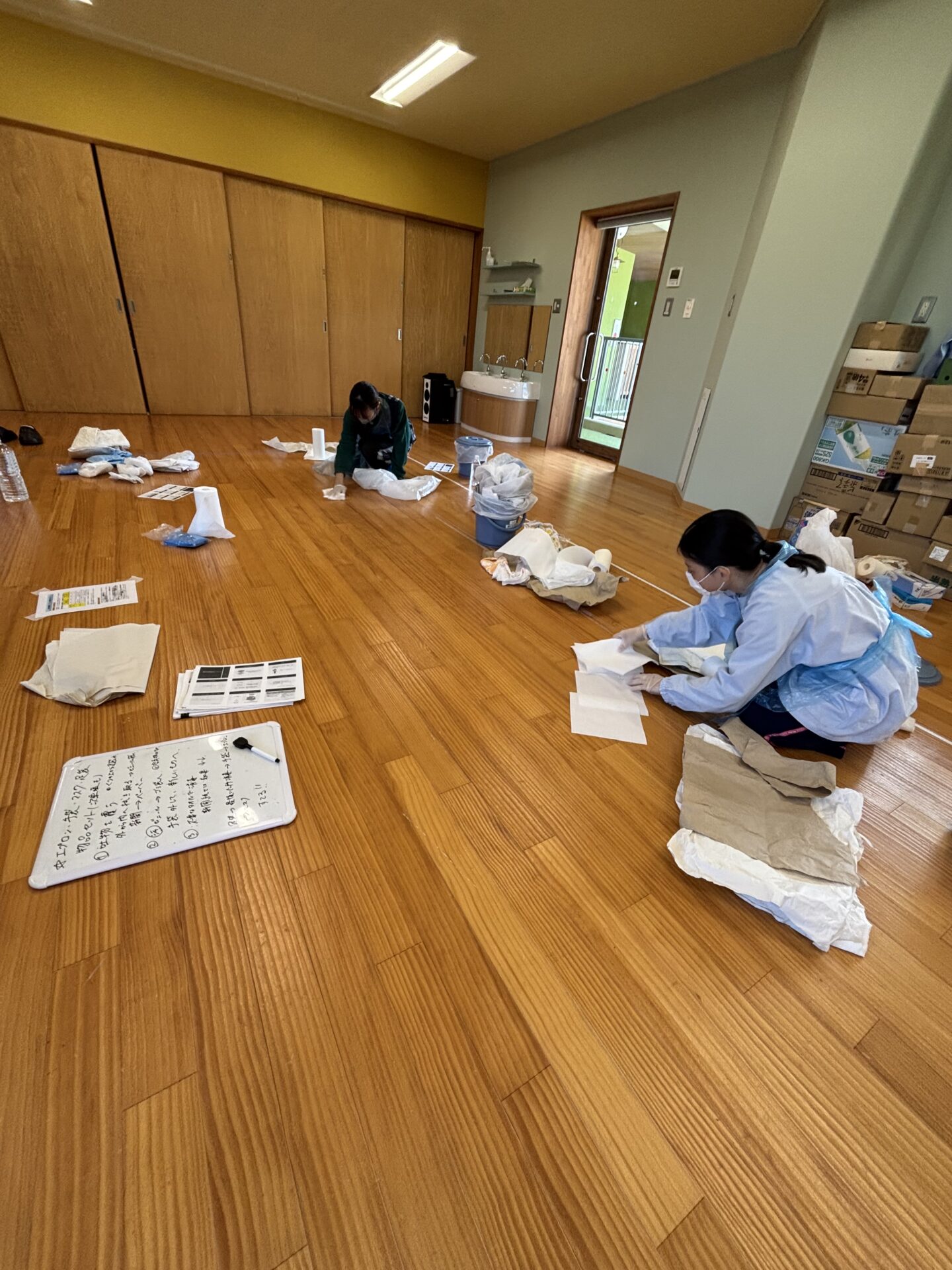 園では、子どもたちの誘導をしながら補助する人、嘔吐処理をする人に分かれます🙂↕️