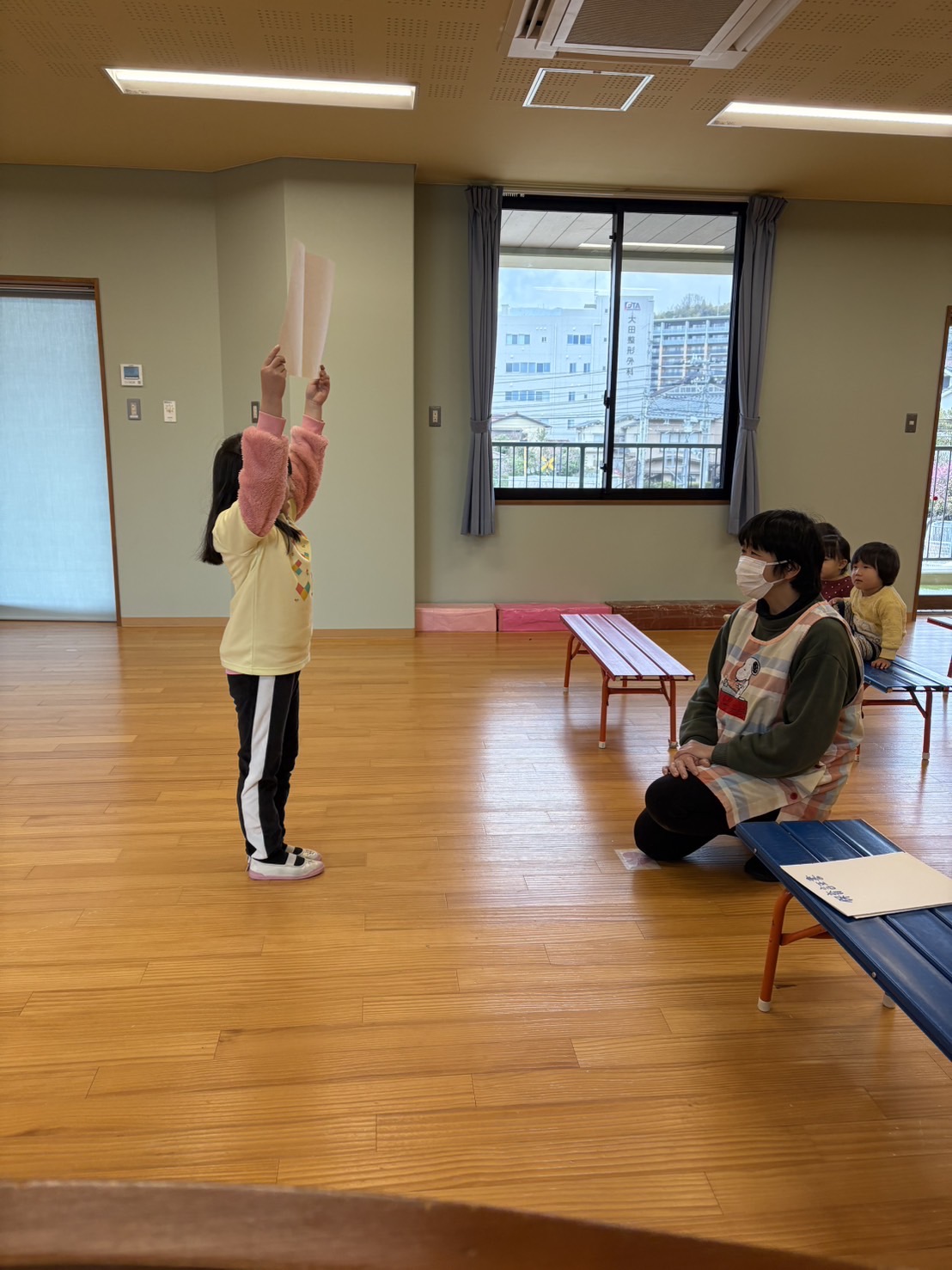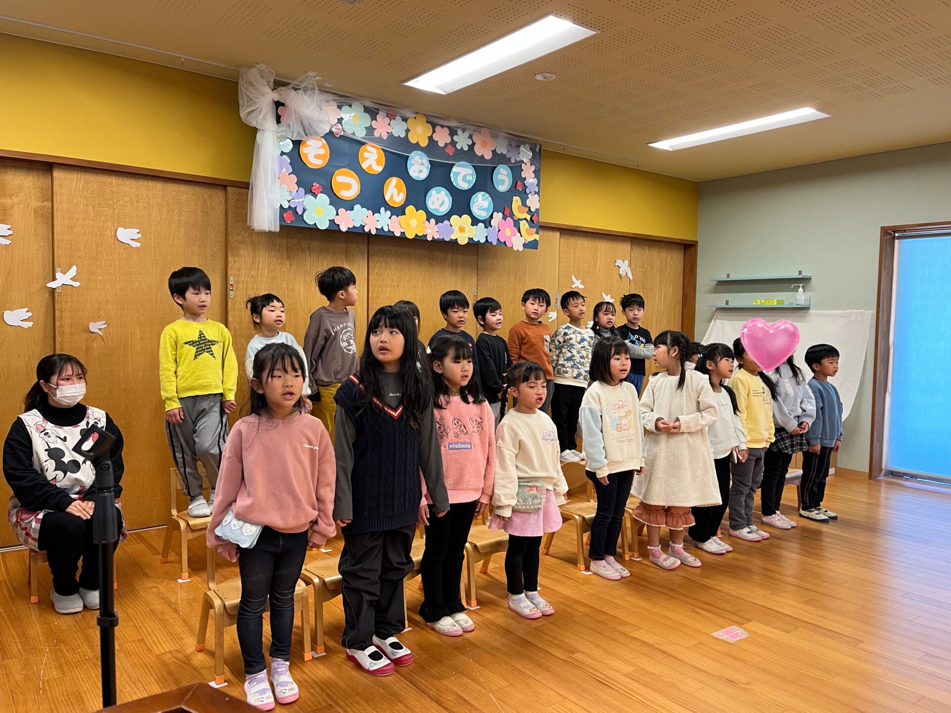 昨日3月19日は、最後の卒園式の練習ということで、保育園のリーダーくじらチームさんの最後の勇姿を見ようと、在園児や先生方がみに来てくれました。