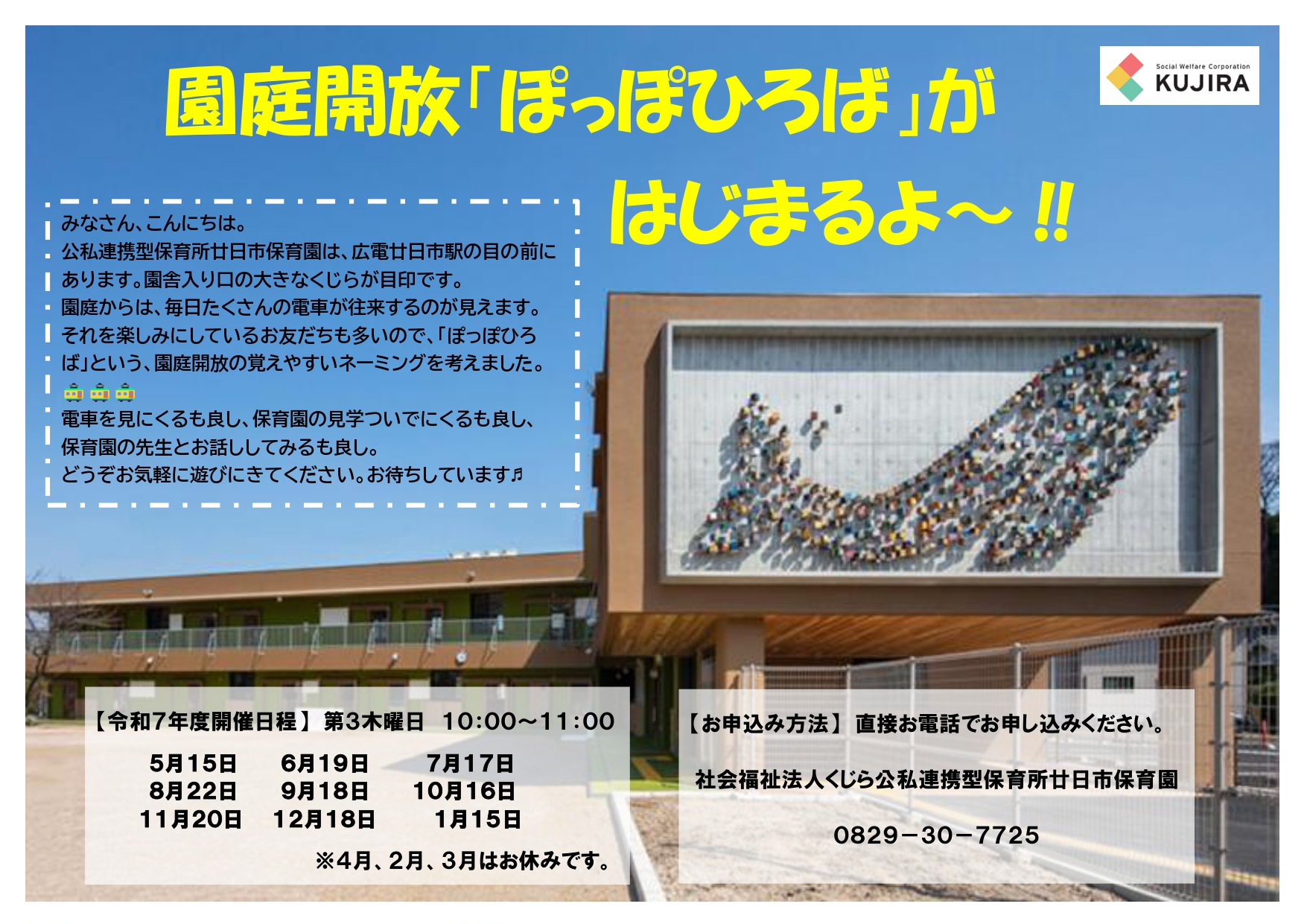 令和7年度 園庭開放「ぽっぽひろば」開催決定!